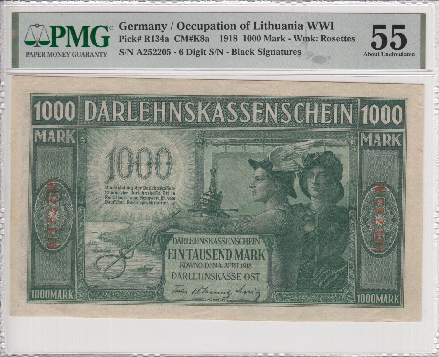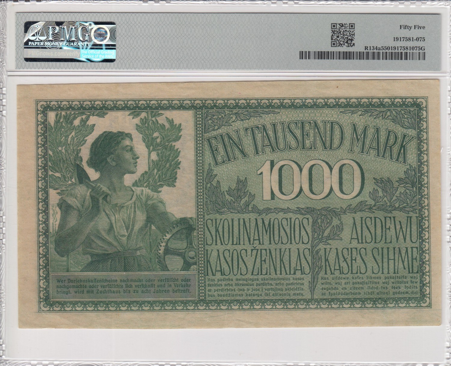 Germany (Occupation of Lithuania WWI, Kowno) 1000 Mark 1918 - PMG 55 About Uncirculated
