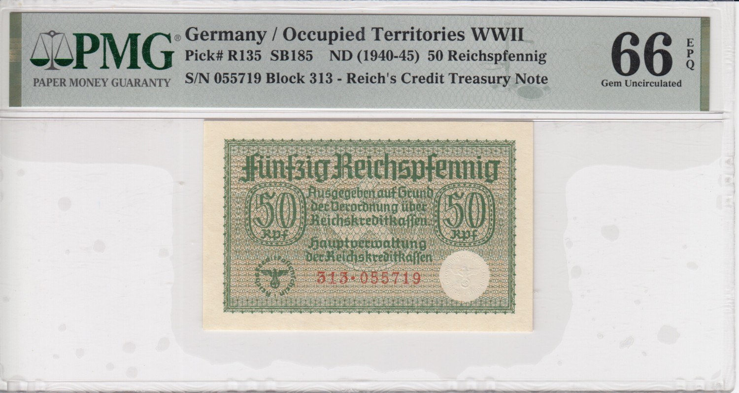 Germany (Occupied Territories WWII) 50 Reichspfennig ND (1940-45) - PMG 66 EPQ Gem Uncirculated