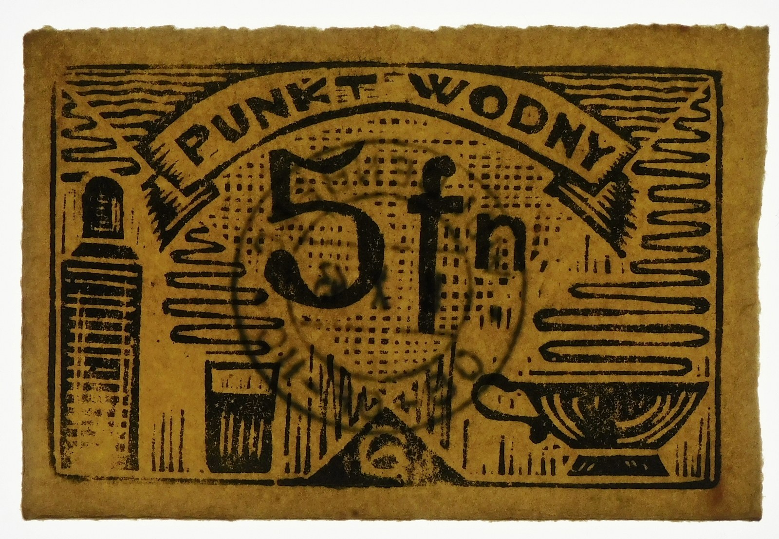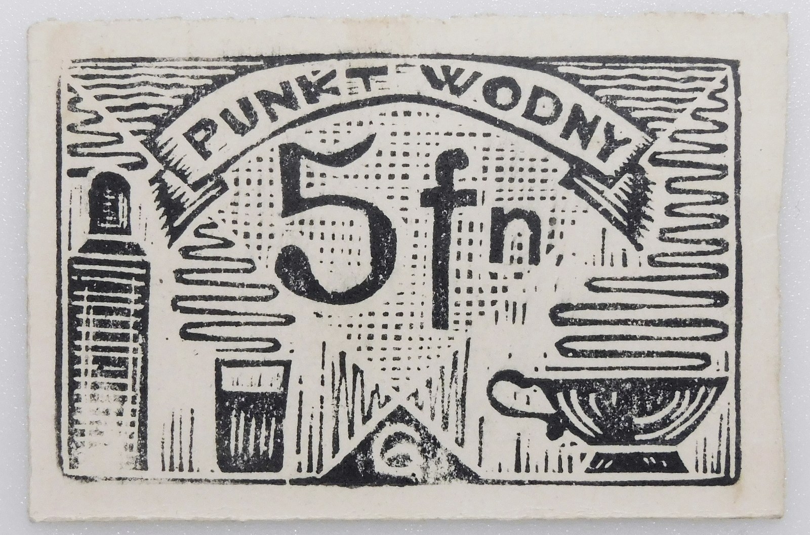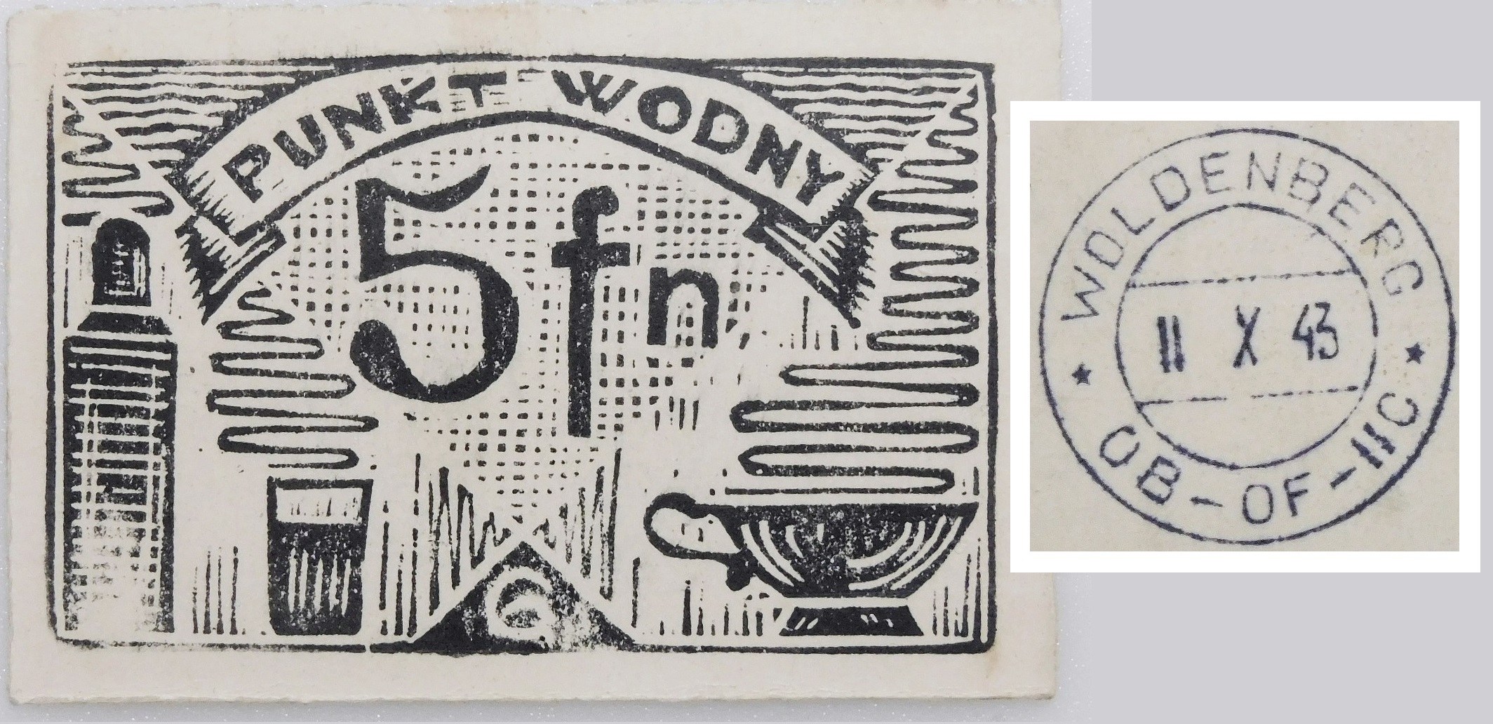 Bon na 5 fenigów z PUNKTU WODNEGO w oficerskim obozie jenieckim II C, w Woldenbergu (obecnie Dobiegniew w woj. lubuskim).