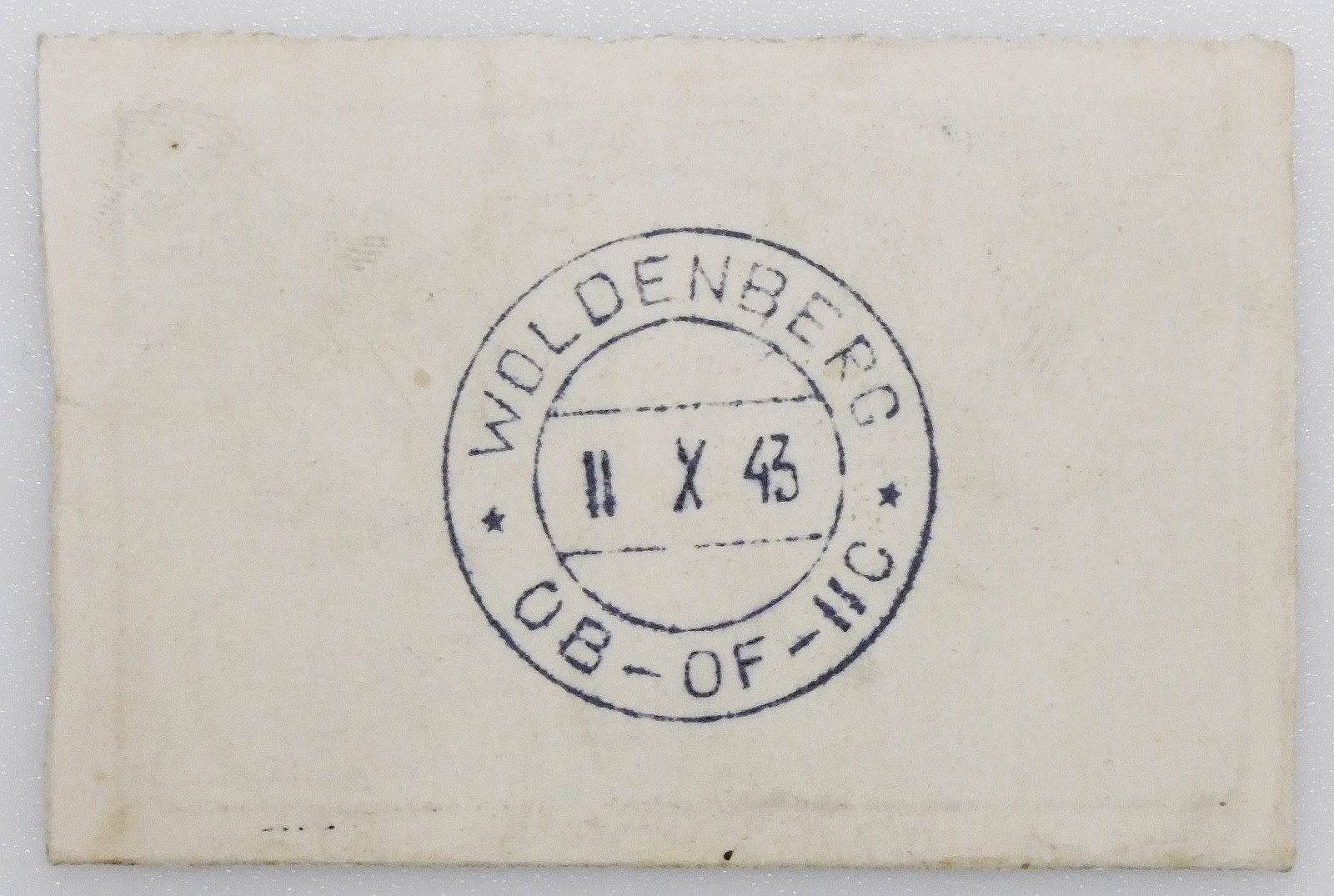 miejsca: ★ WOLDENBERG ★ OB - OF - IIC ★ oraz datą po środku: II X 43