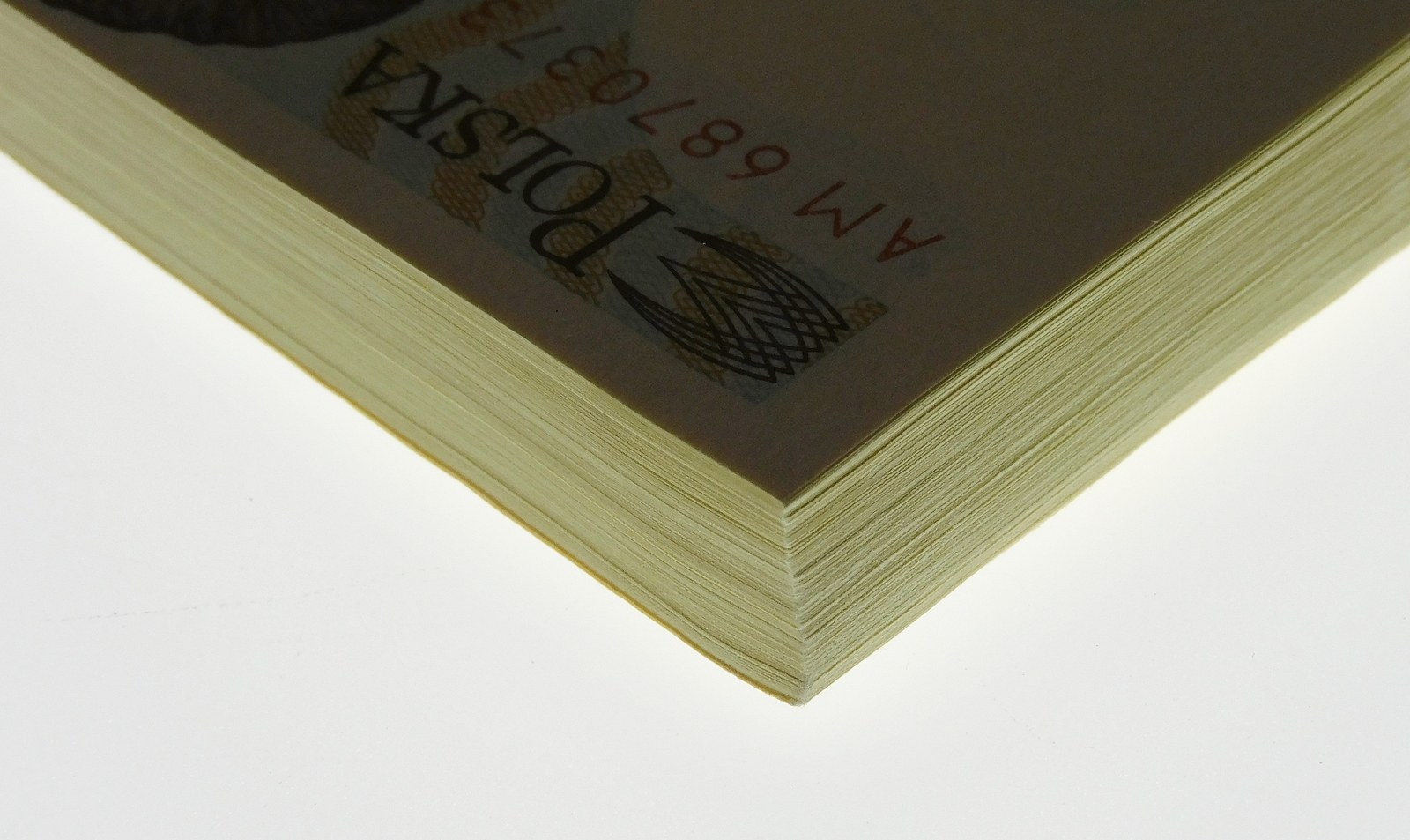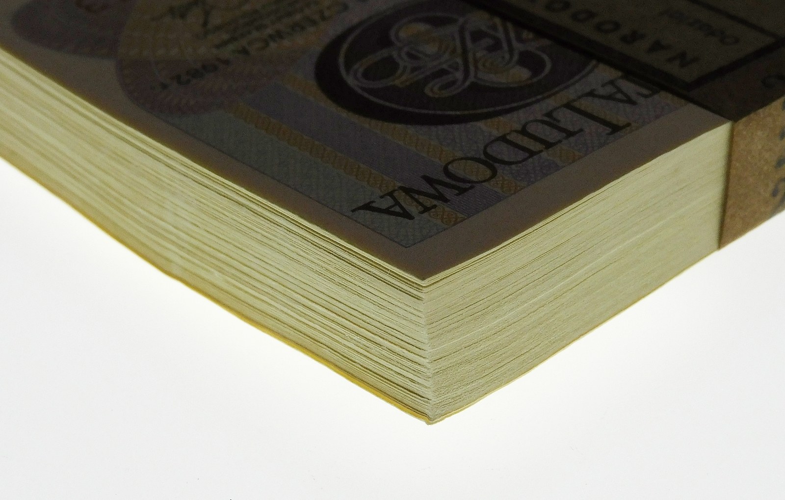 Banderola i banknoty wew. w paczce w stanie bankowym, jedynie na prawej dolnej krawędzi paczki delikatnie "uderzenie" na narożniku.