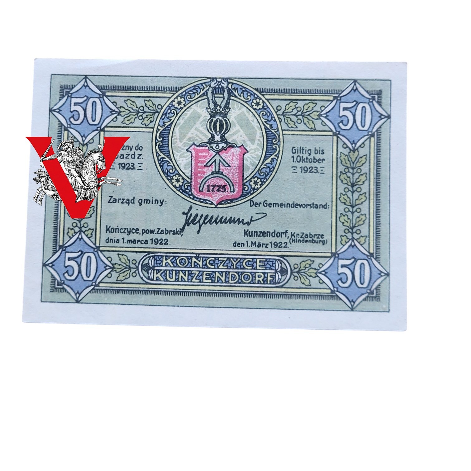 Powstanie Śląskie, Kończyce, 50 Fenigów 1922, Na Pamiątkę Powstania, Piękny