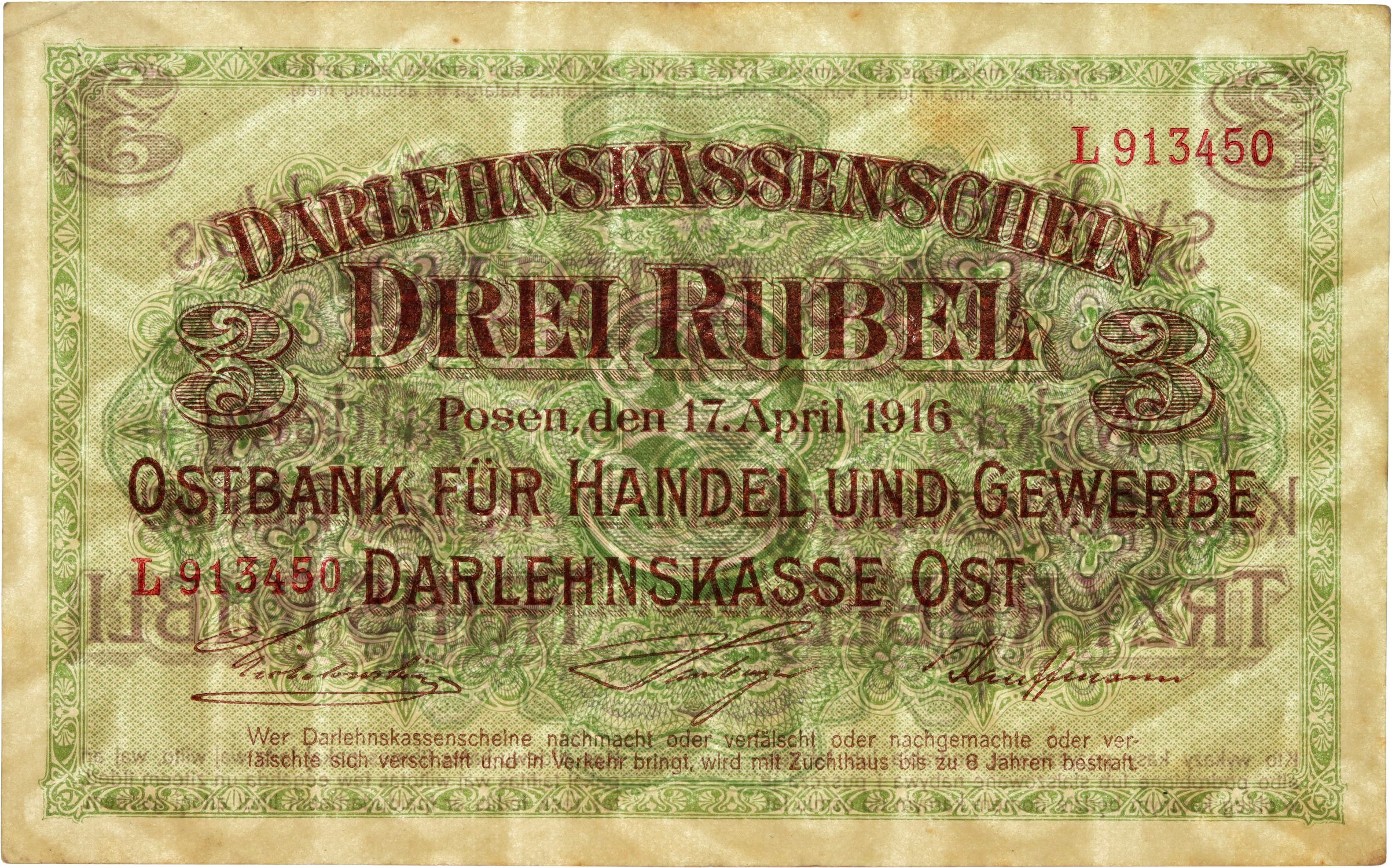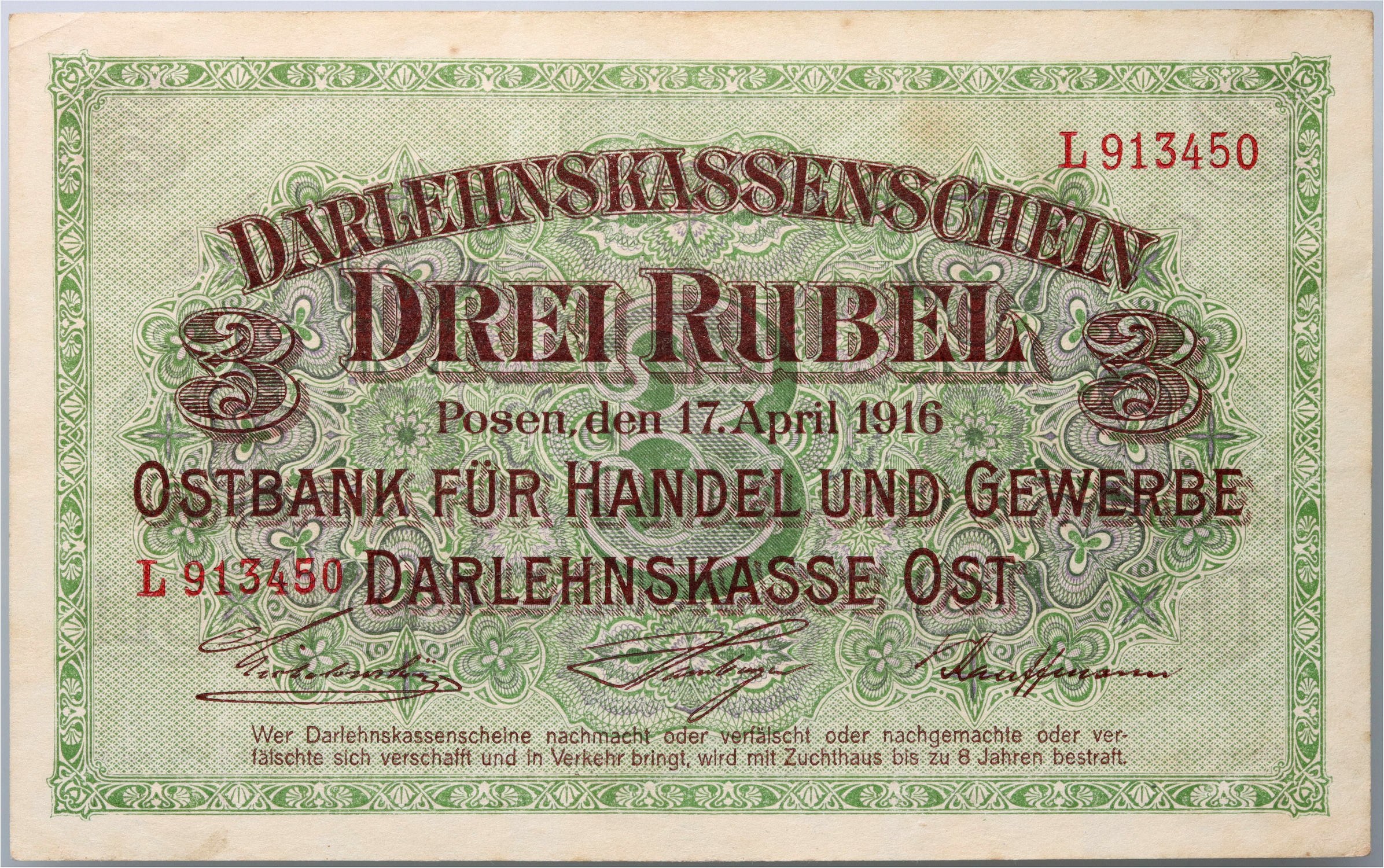 Numer 913450. Ugięcie banknotu w pionie i poziomie. Złamane narożniki lewe i prawy górny. Papier sztywny. Dobra prezencja.