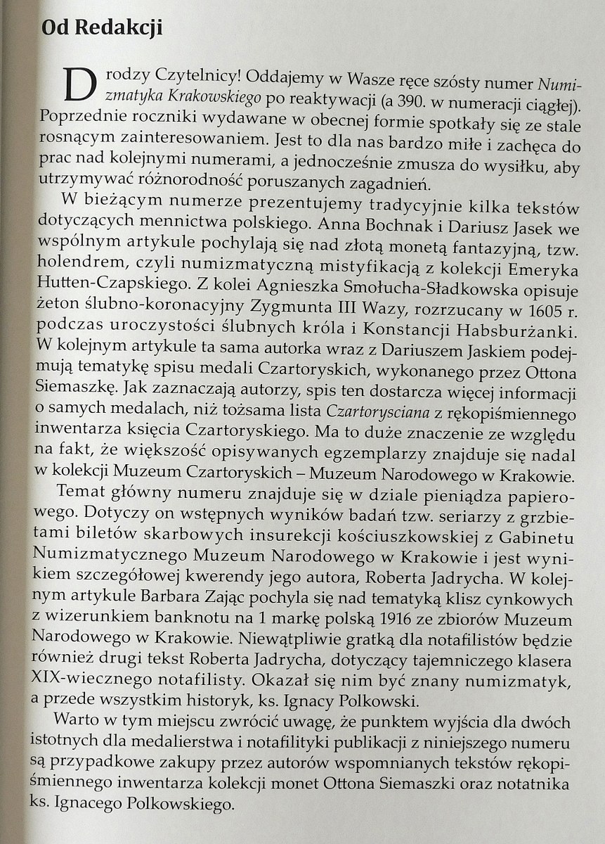 Zawiera m.in. ciekawy artykuł dotyczący pieniądza papierowego: