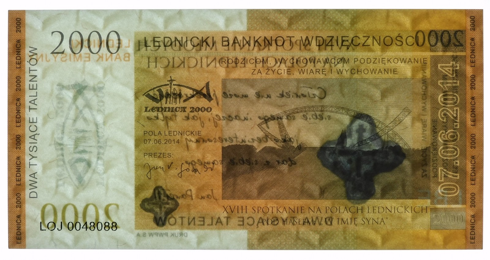Druk PWPW (2014) - 2000 talentów - lednicki banknot wdzięczności - ser. LOJ 0048088