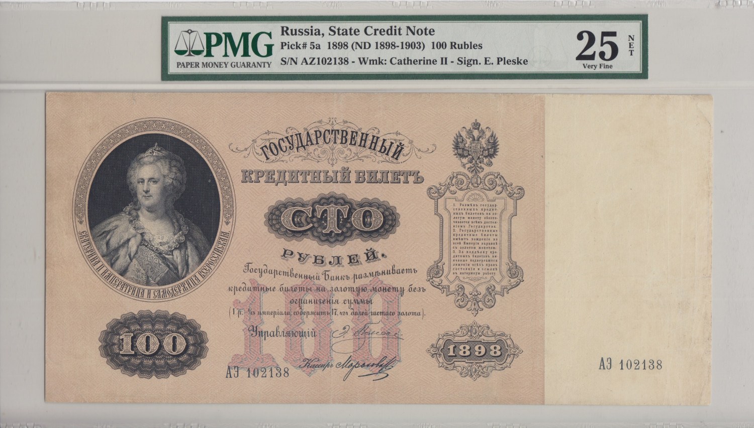 Russia 100 Rubles 1898 (ND 1898-1903) - PMG NET 25 Very Fine