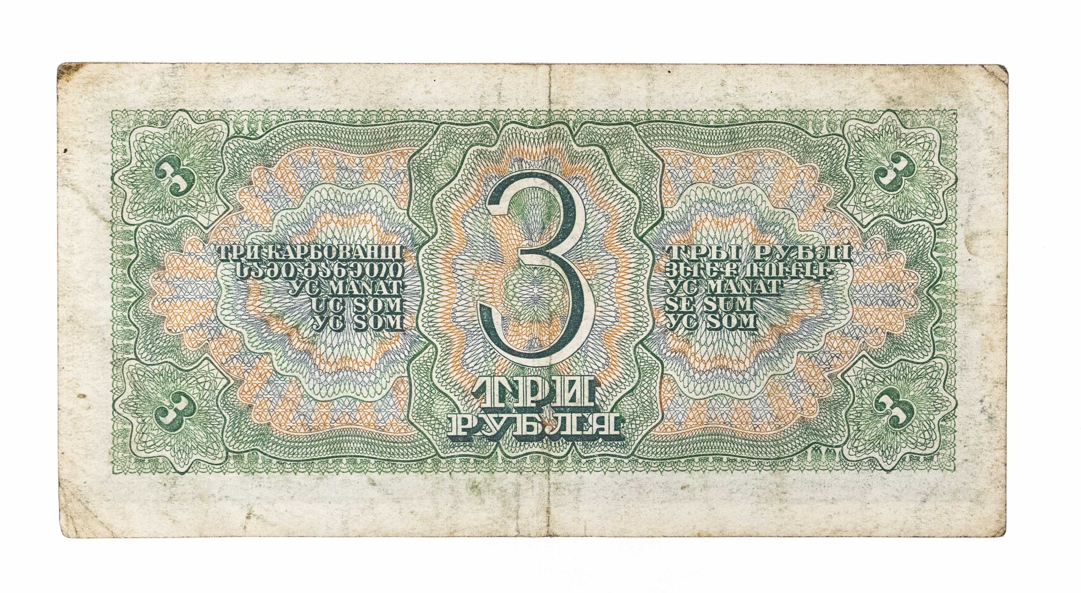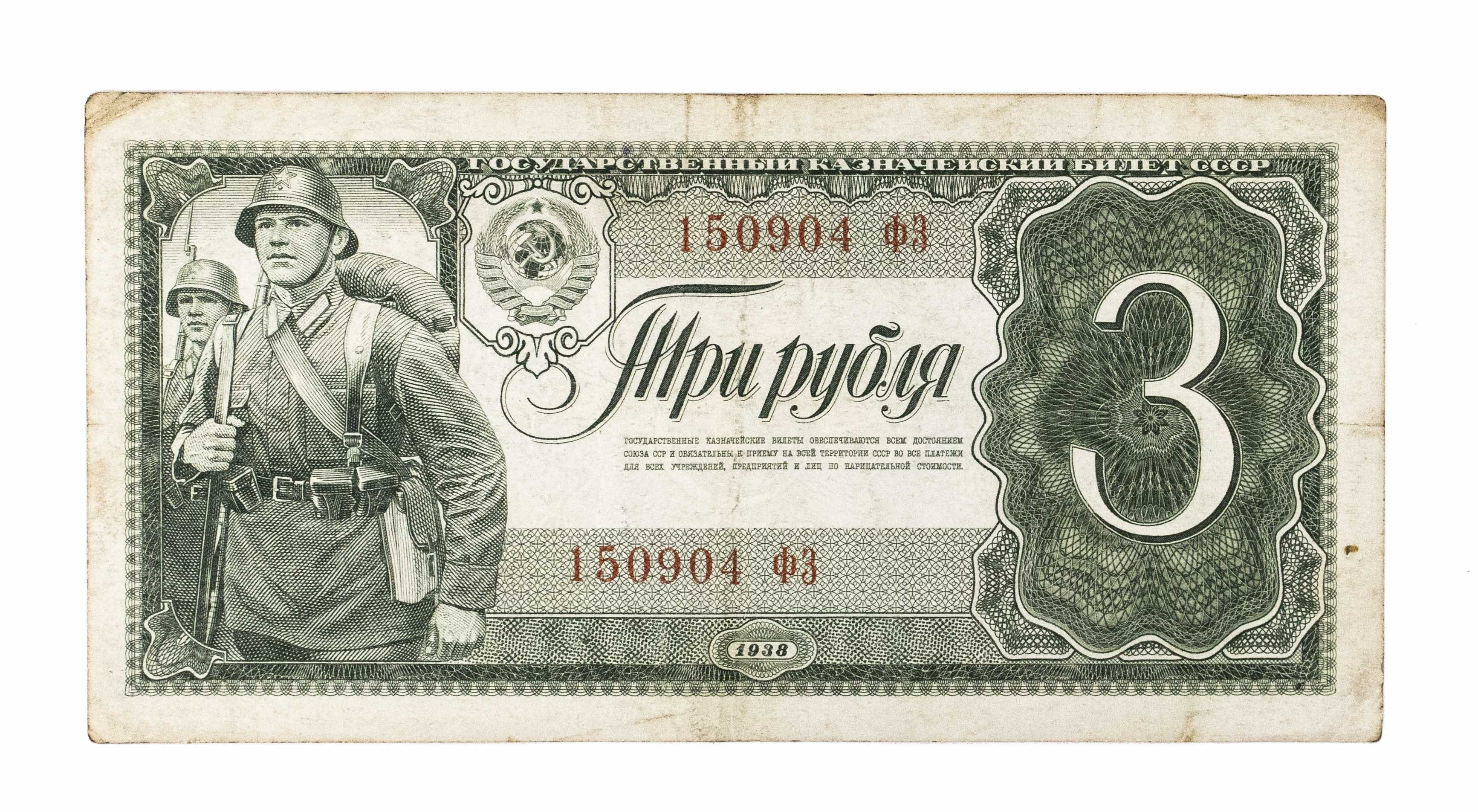 Banknot wielokrotnie łamany i gięty, papier sztywny. Seria Ф3 150904.