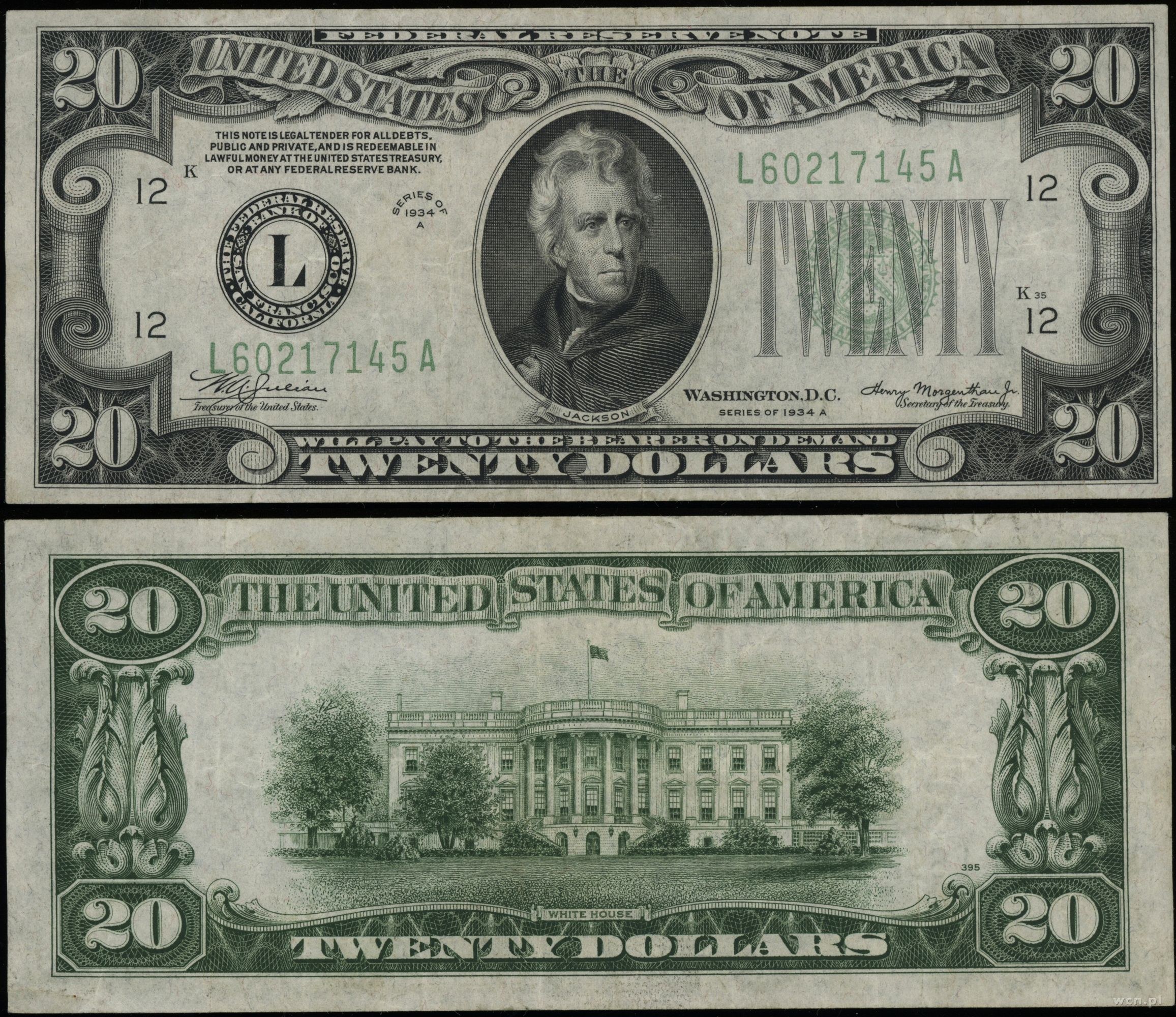 seria L 60217145 A, zielona pieczęć, podpisy Julian, Morgenthau