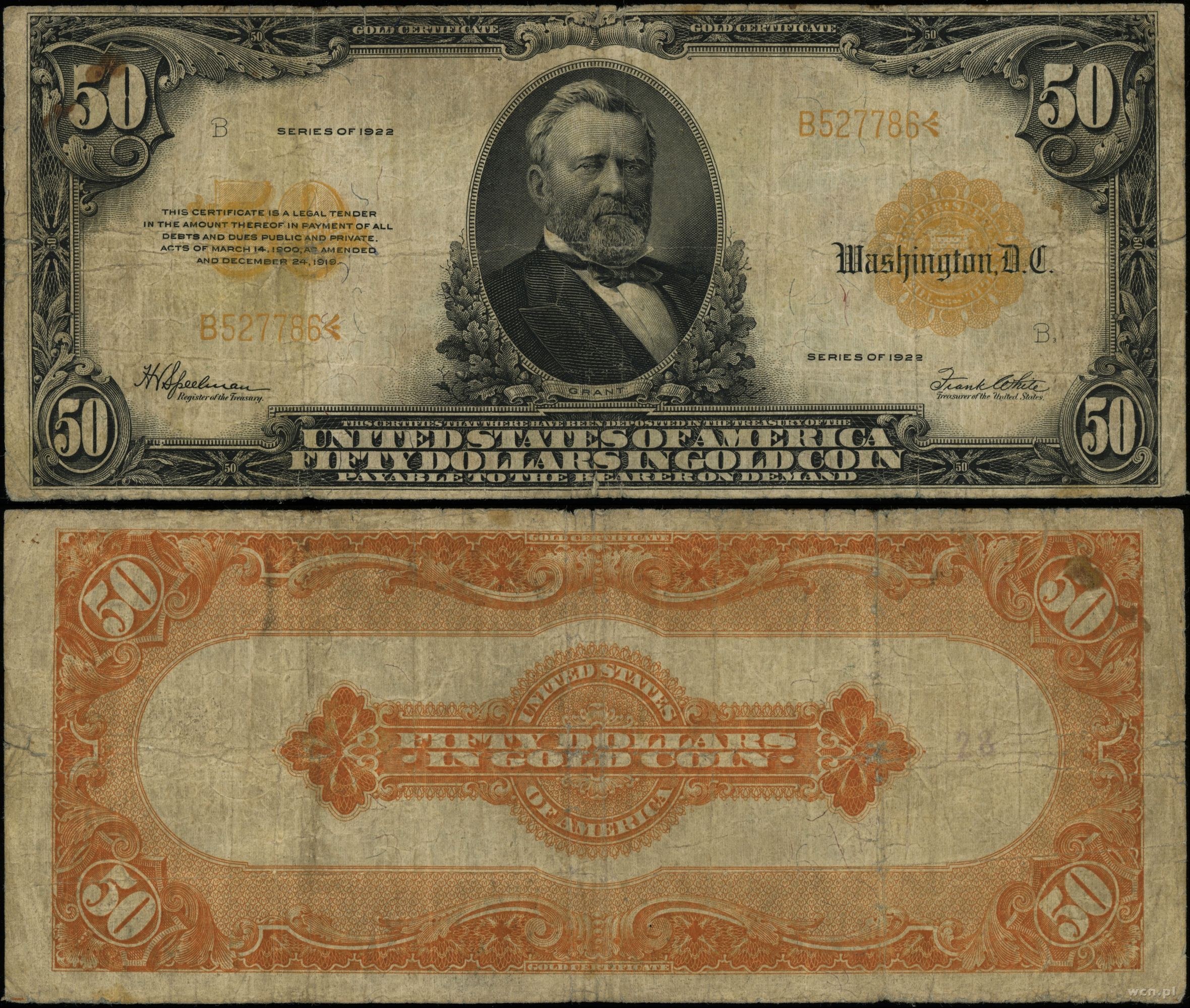 seria B 527786, żółta pieczęć, podpisy: Speelman i White