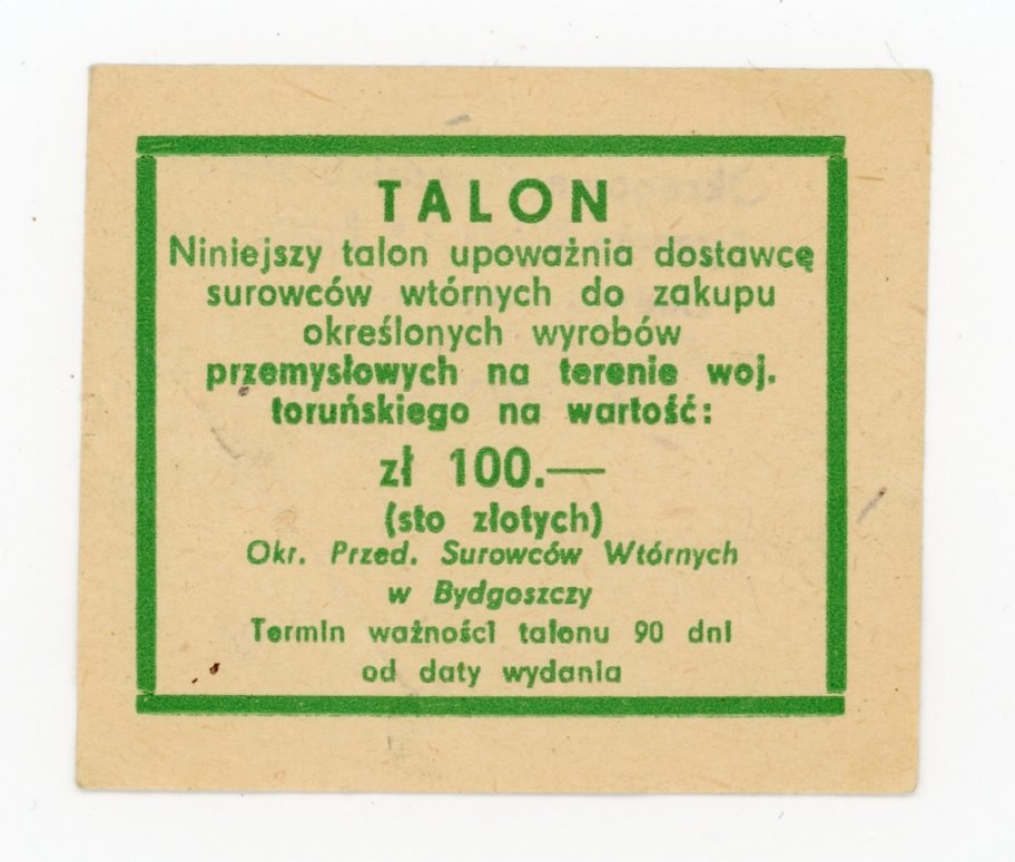 Talon makulaturowy - woj. toruńskie, 100 złotych