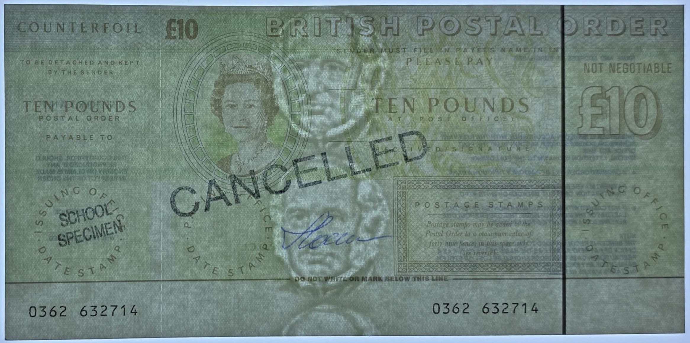Czek sygnowany samym nazwiskiem przez jego projektanta Czesława Słanię.