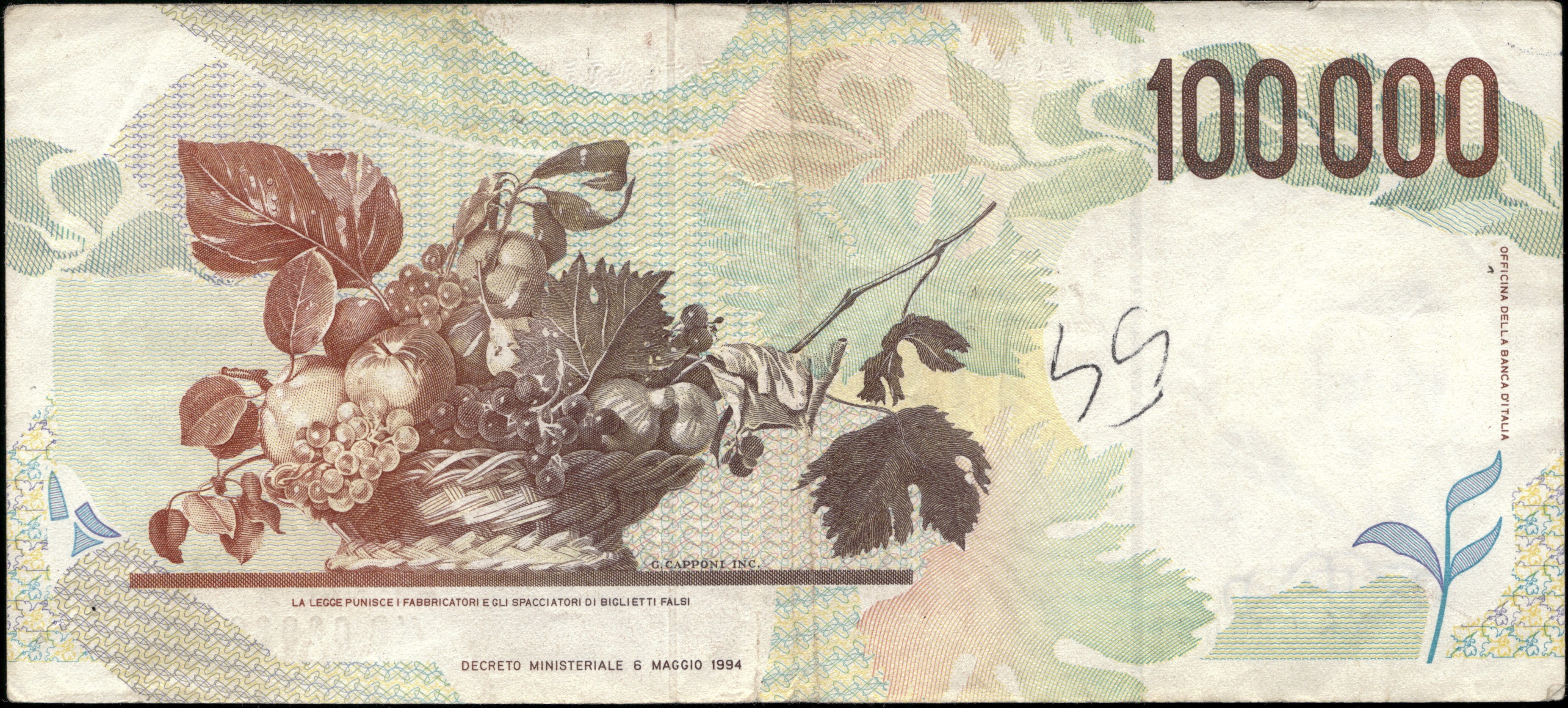 Italy. 1994 100000 Lire Prefix XB A Replacement