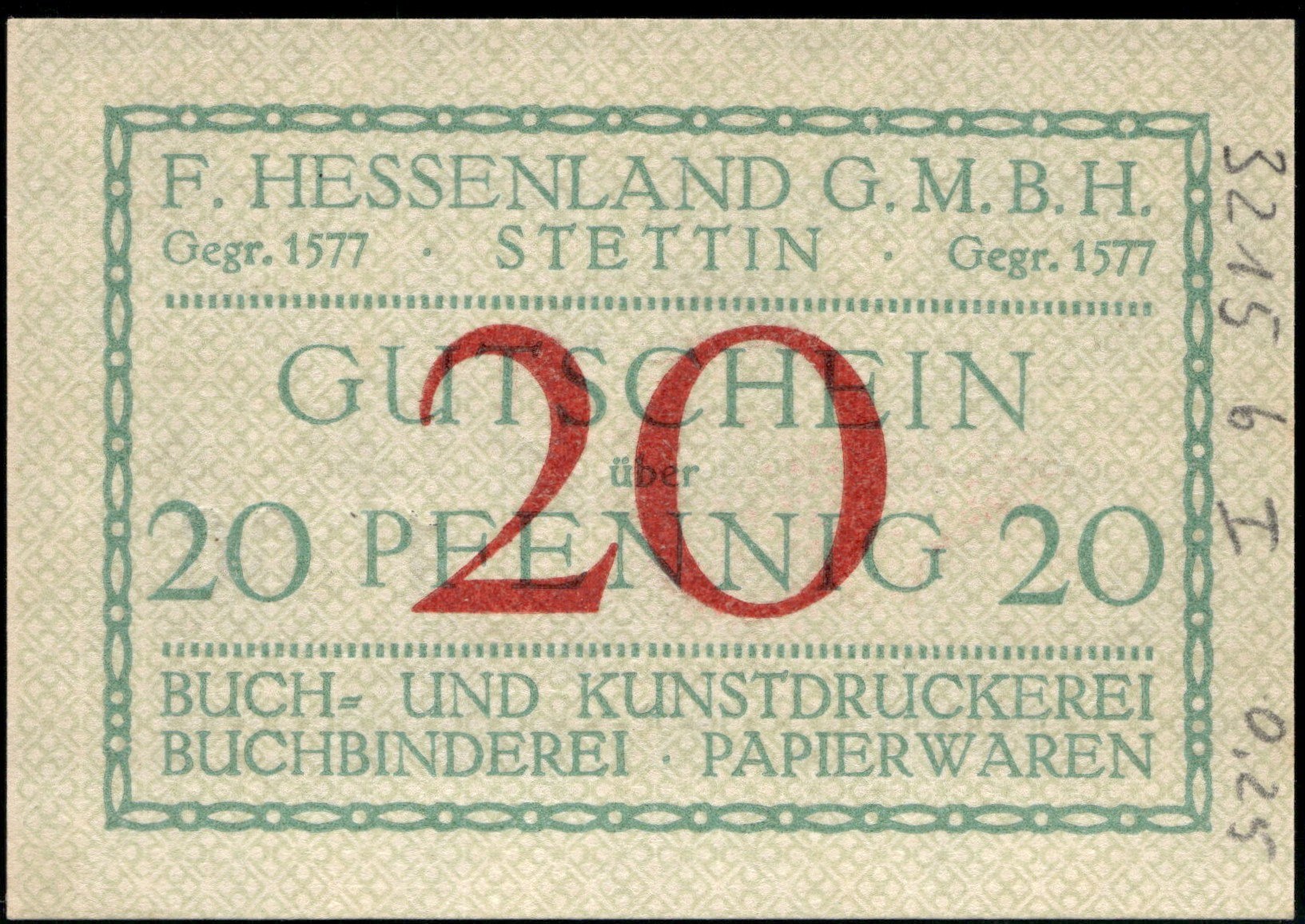 Poland. Szczecin 20 Fenigow 1918