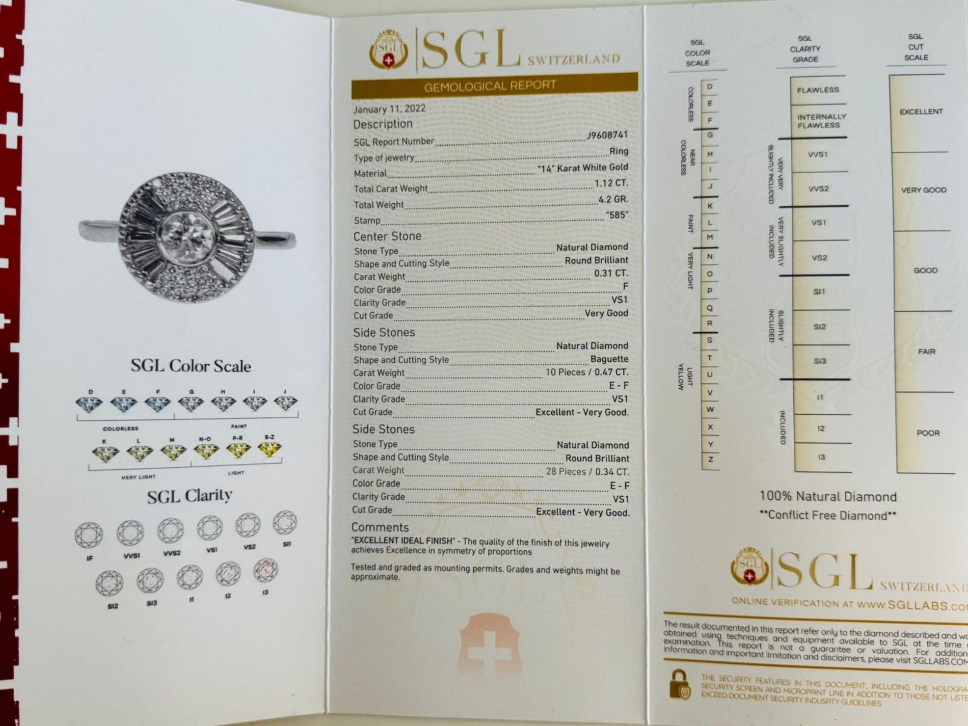 14K WHITE GOLD RING 6.43 GR WITH 0.31 CT NATURAL DIAMOND COLOR F CLARITY VS + 0.47 CT DIAMONDS COLOR E-F CLARITY VS + 0.34 CT DIAMONDS COLOR E-F CLARITY VS - SIZE 55 - DH-R716 - AUCTION COMMISSION 25%