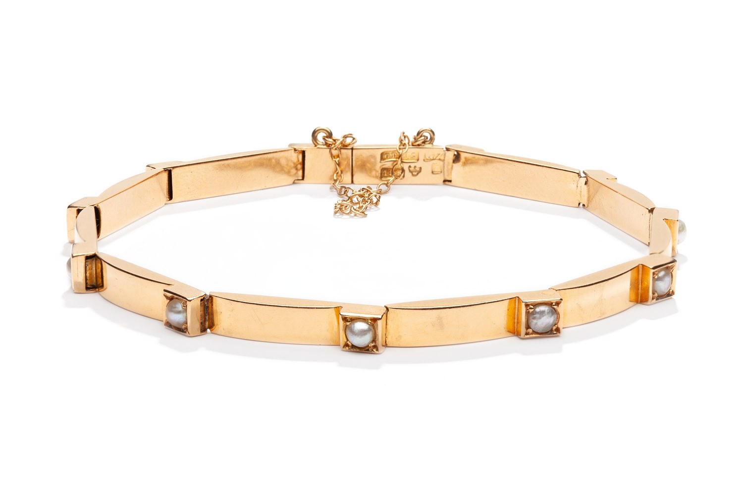 złoto pr. ~ 0,750, 11 pół-pereł naturalnych o śr.: 2,5-3 mm, szwedzka punca państwowa, znak miejski 'M' (Malmö), znak datujący 'G7' (1909), złotnik 'GD&Co', masa: 11,42 g, śr. wewn.: 6 cm