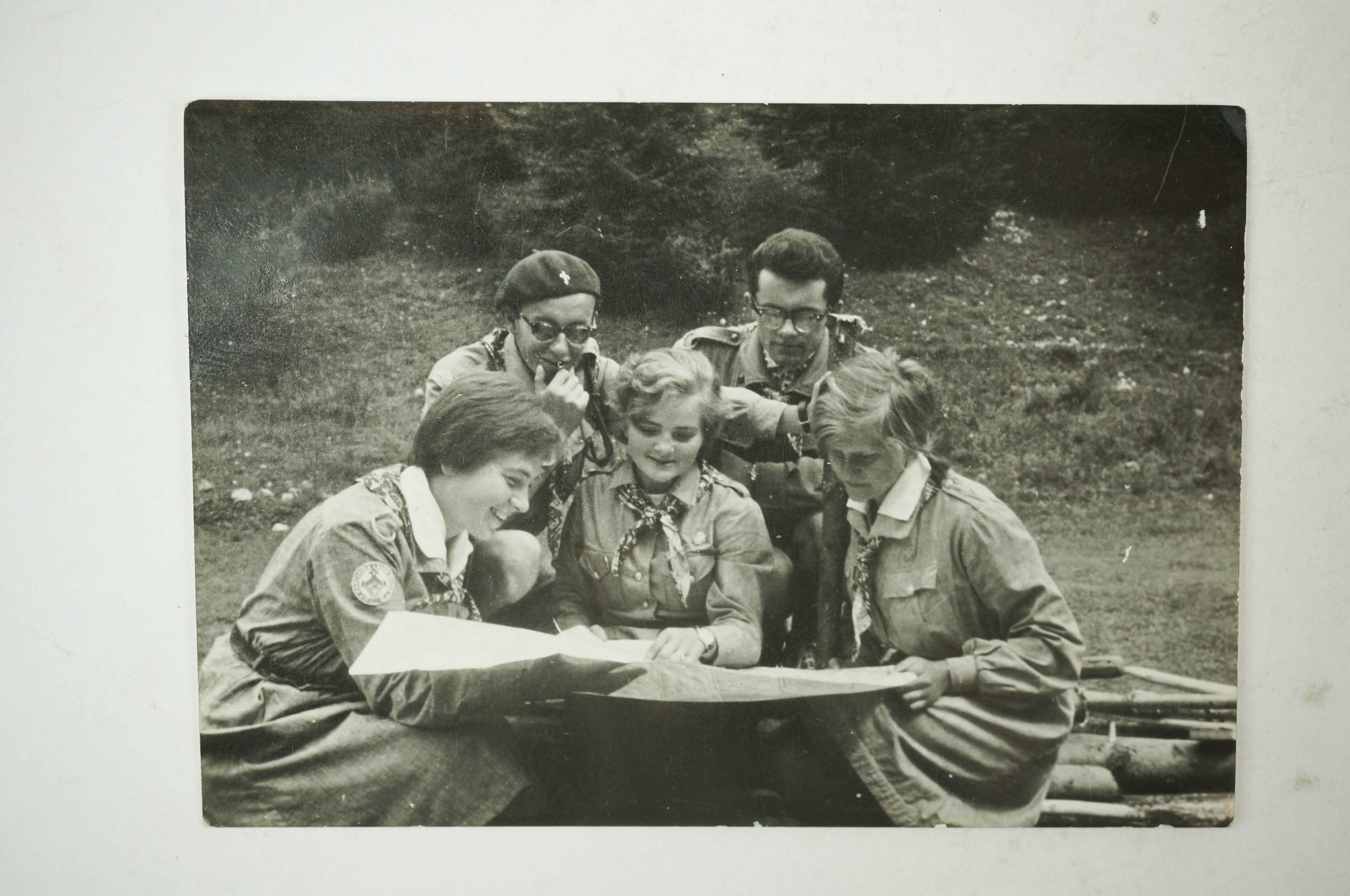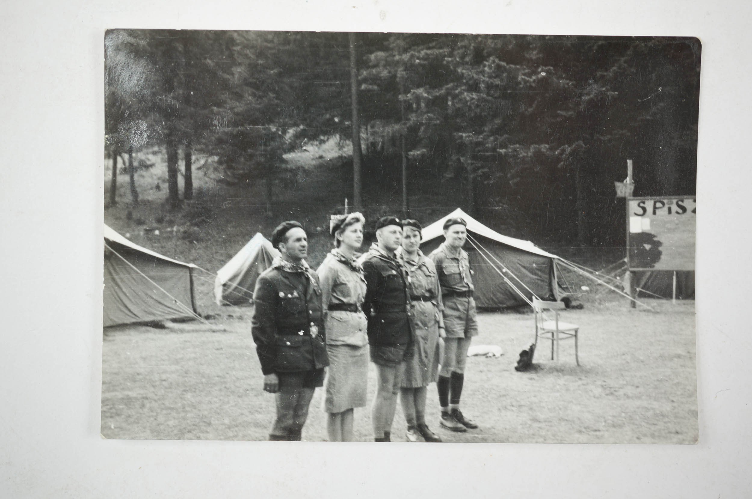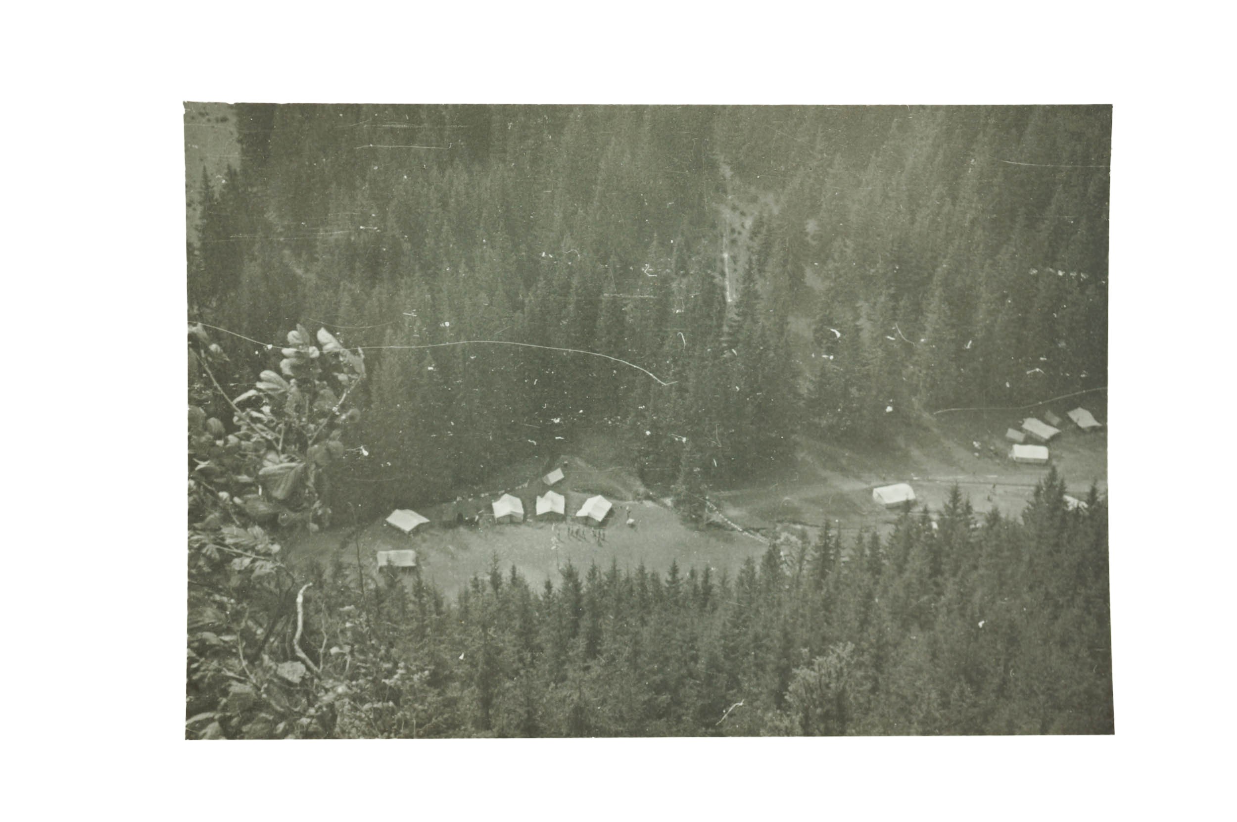 Zestaw 11 zdjęć z obozu harcerskiego w okolicach pasma Branisko [Słowacja], na zdjęciach podobóz "Radar", wyprawy w góry, harcerze i harcerki, instruktorzy, f. 9x6,5cm, [2]
