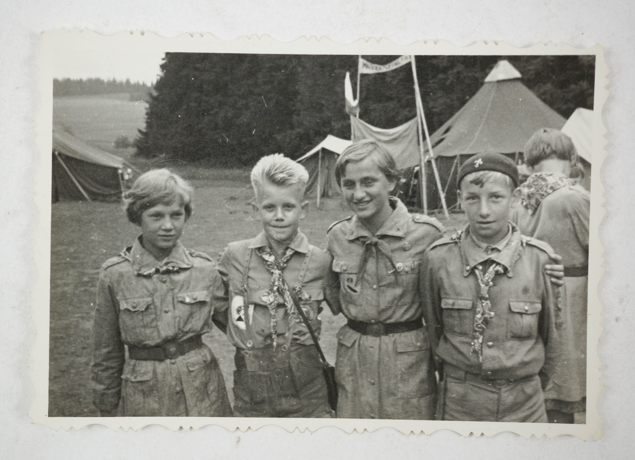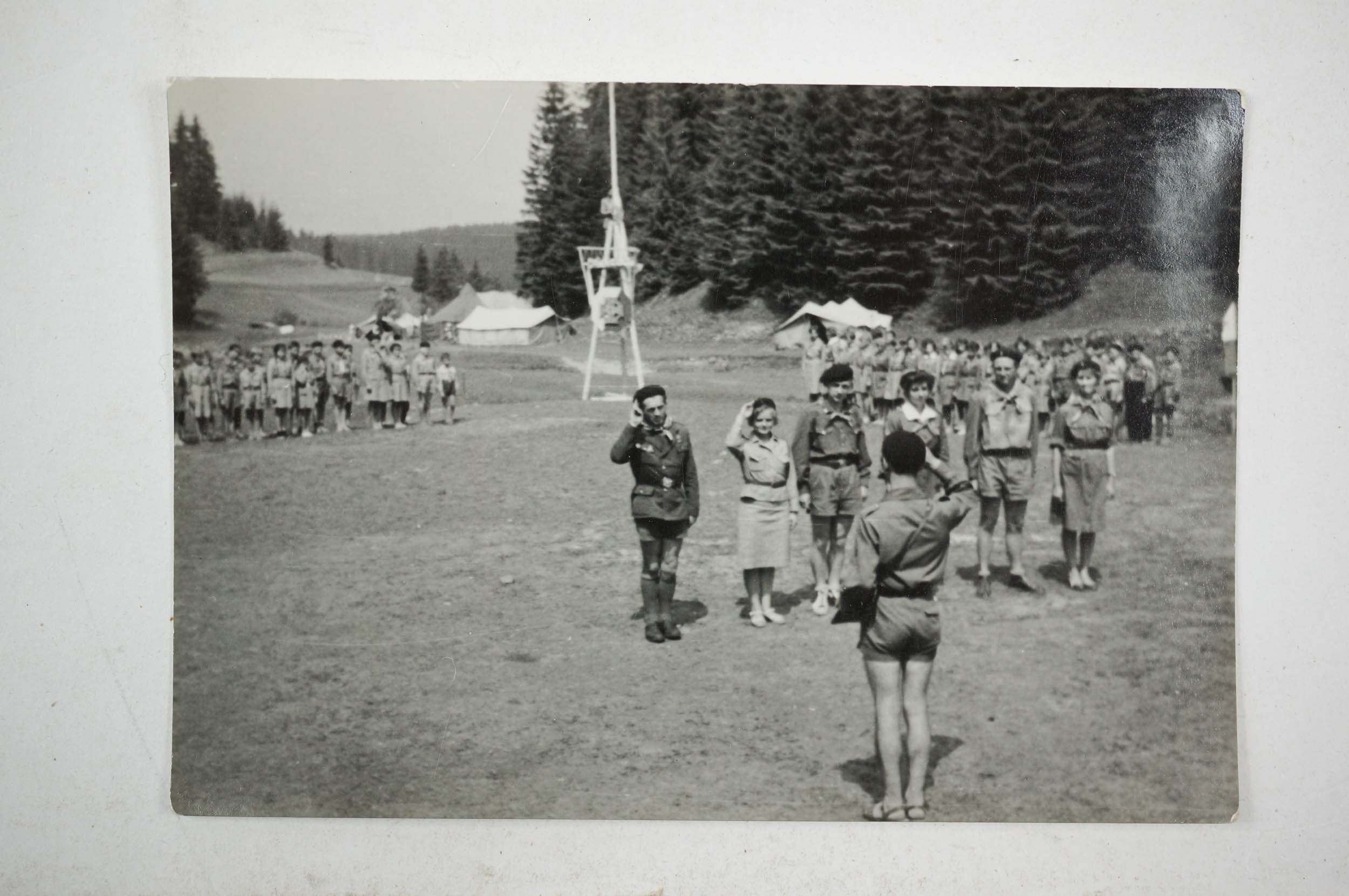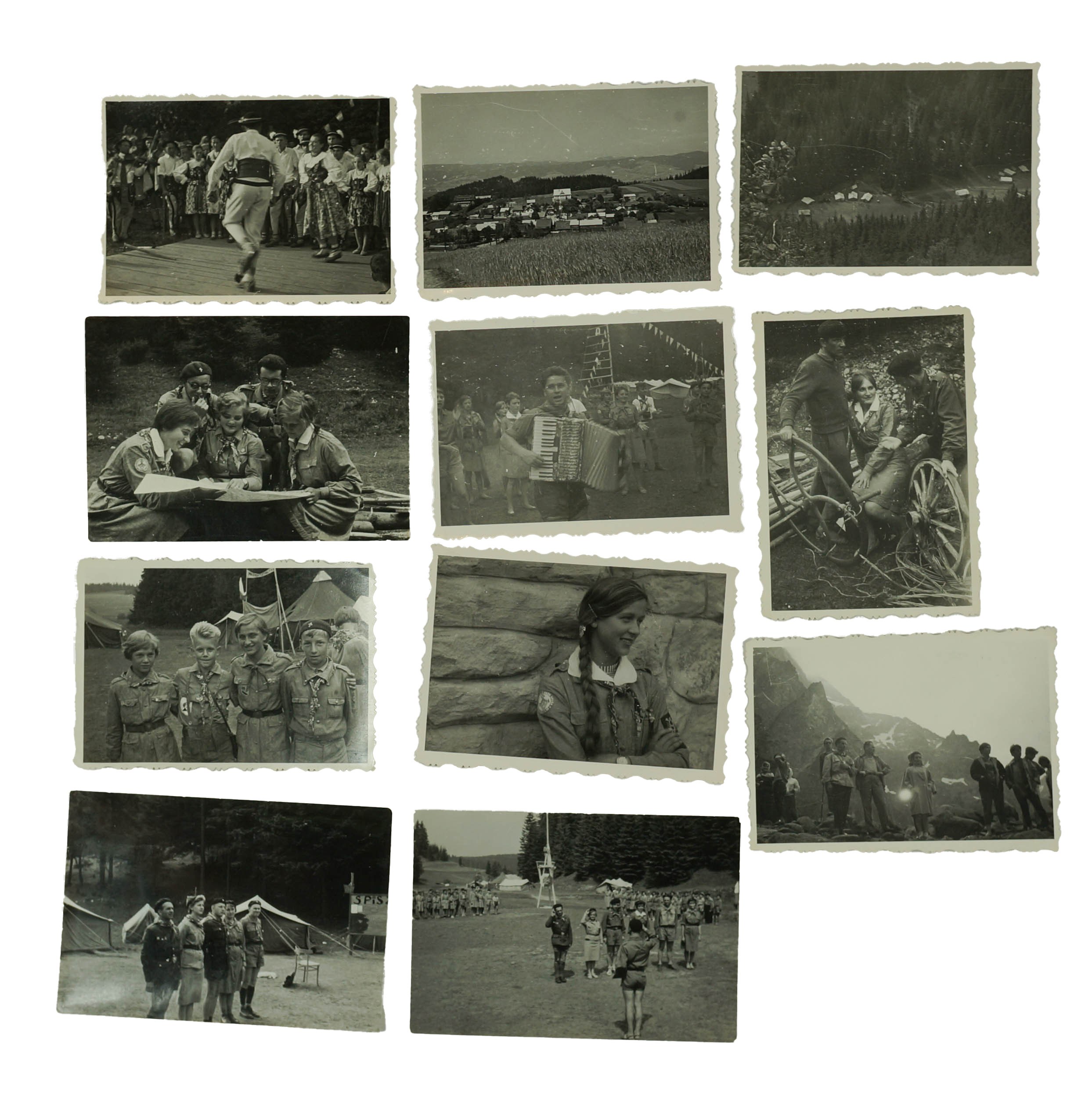 Zestaw 11 zdjęć z obozu harcerskiego w okolicach pasma Branisko [Słowacja], na zdjęciach podobóz "Radar", wyprawy w góry, harcerze i harcerki, instruktorzy, f. 9x6,5cm, [2]