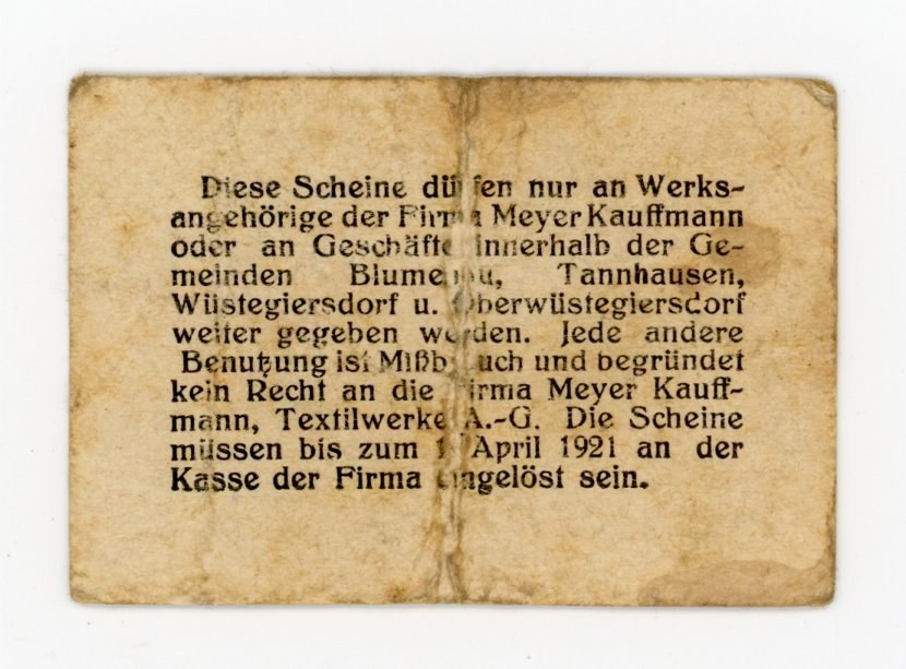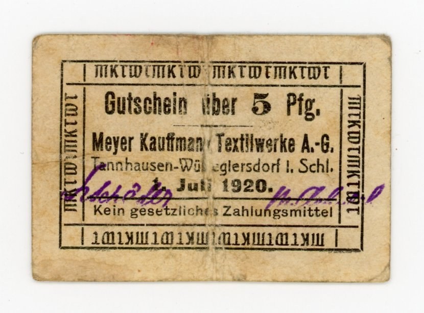 Jedlinka-Głuszyca/Tannhausen-Wüstegiersdorf, Meyer Kauffmann, 5 fenigów 1920. Stan zachowania: 3-
