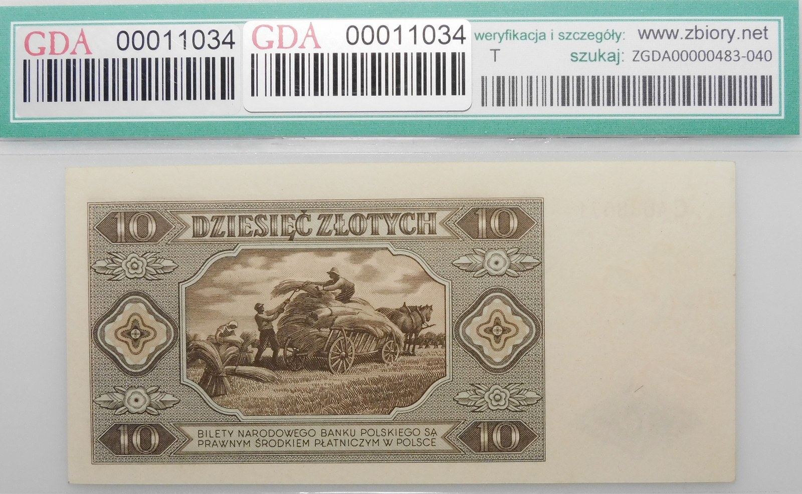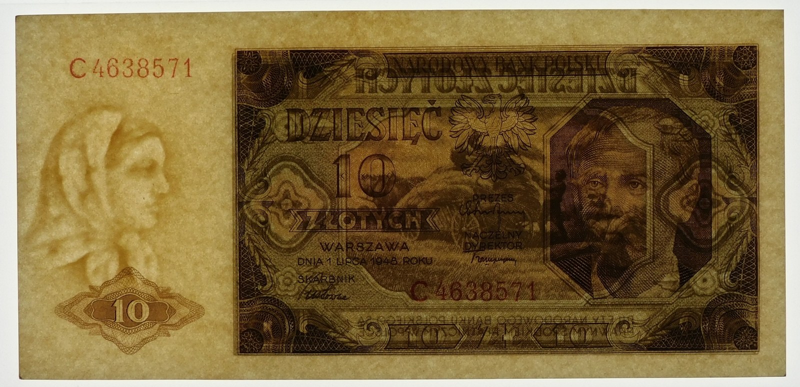 Banknot 10 złotych 1948, ser. C - rzadka odmiana o serii jednoliterowej.