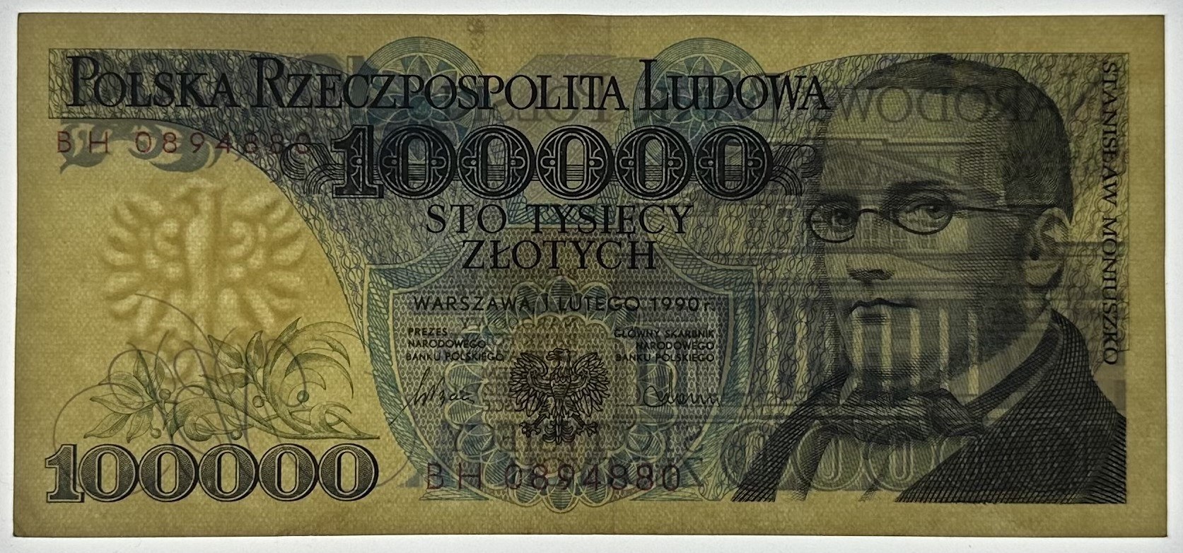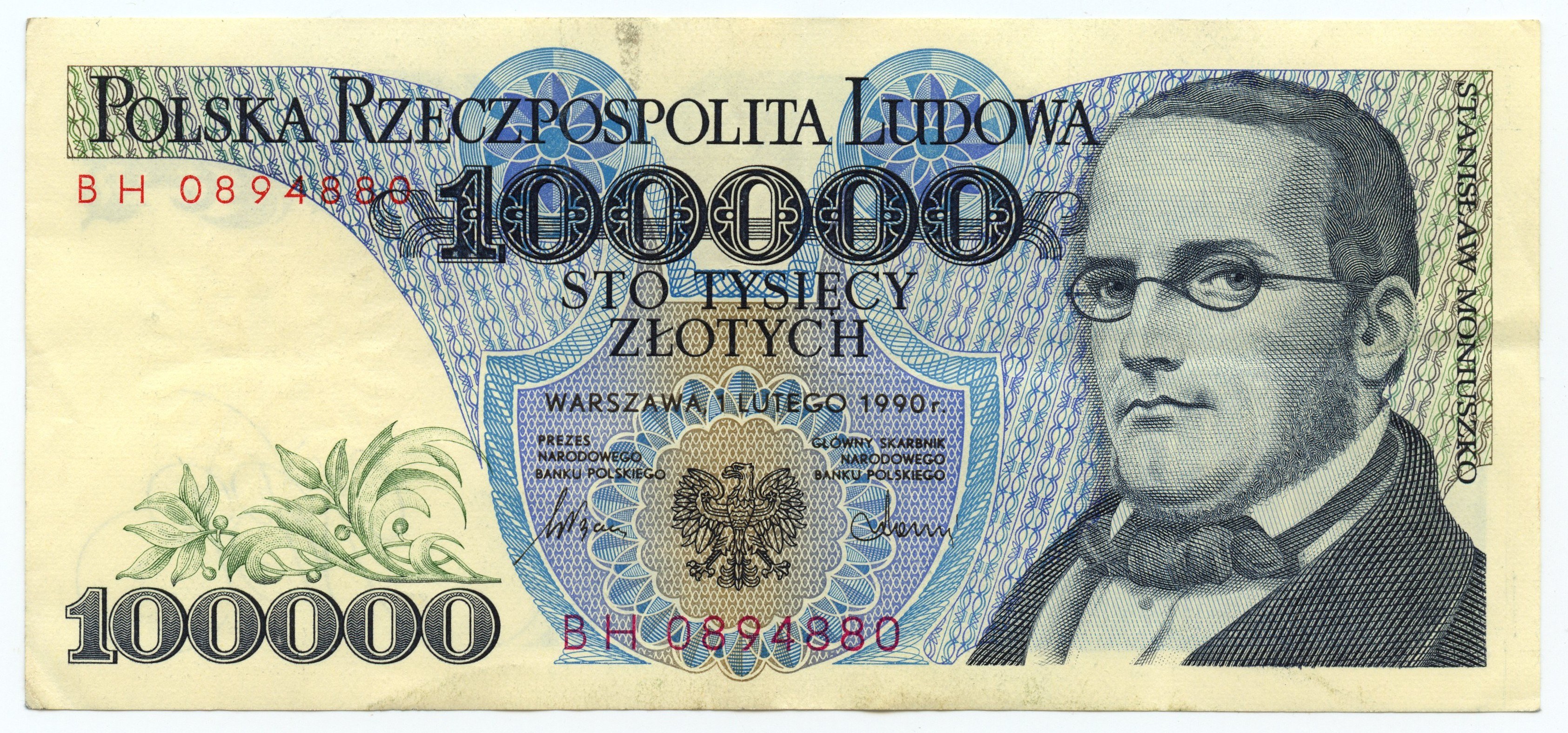 Liczne pionowe ugięcia i załamania oraz poziome załamanie. Zabrudzenie przy górnej krawędzi na wysokości litery S.