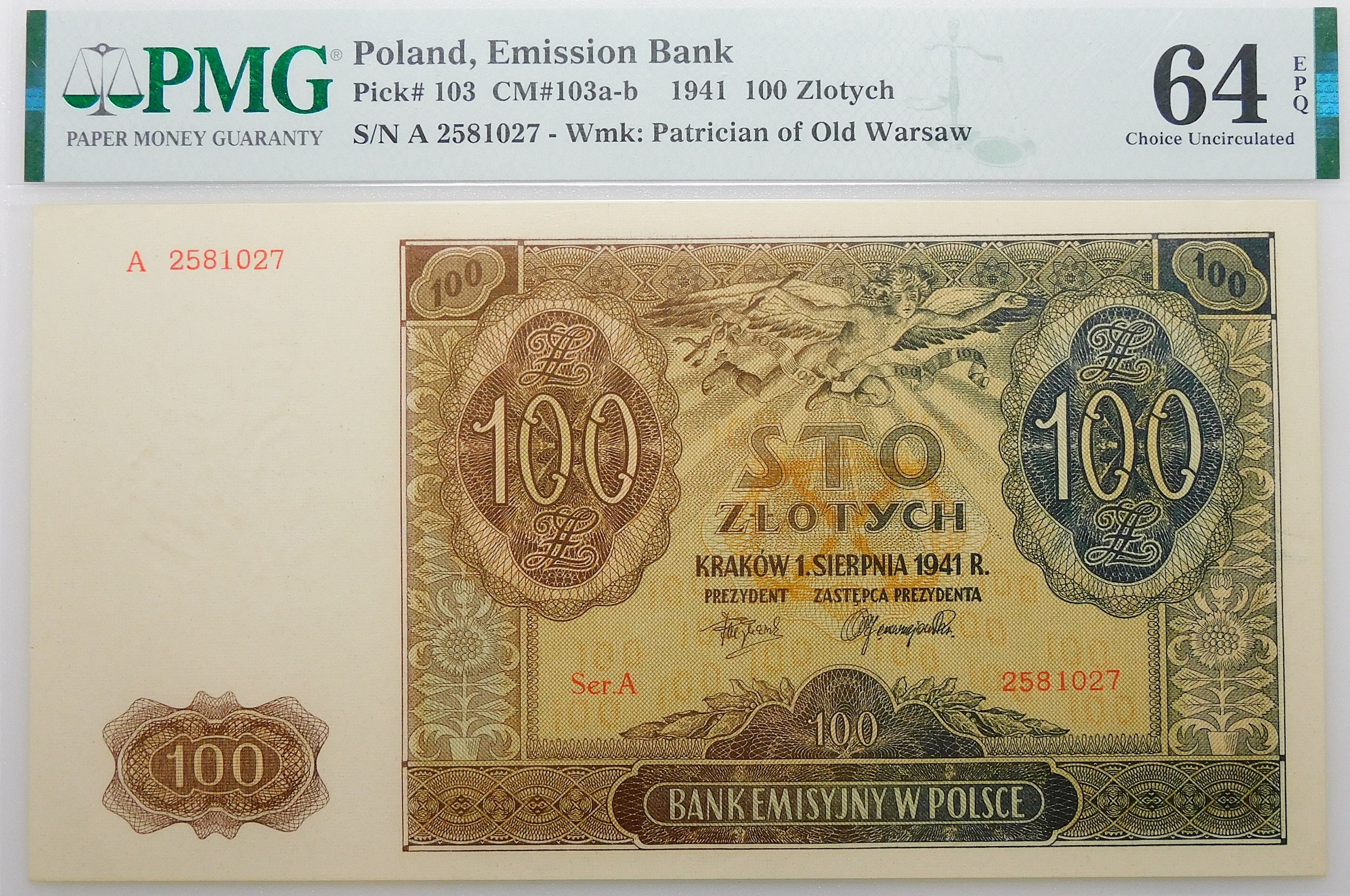 Atrakcyjny egzemplarz, potwierdzony wysoką notą gradingową PMG, z adnotacją EPQ świadczącą o wyjątkowej jakości papieru,