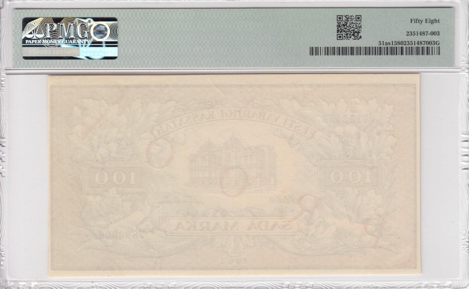 Estonia (Treasury Note) 100 Marka 1923 - FRONT SPECIMEN - PMG 58 Choice About Unc