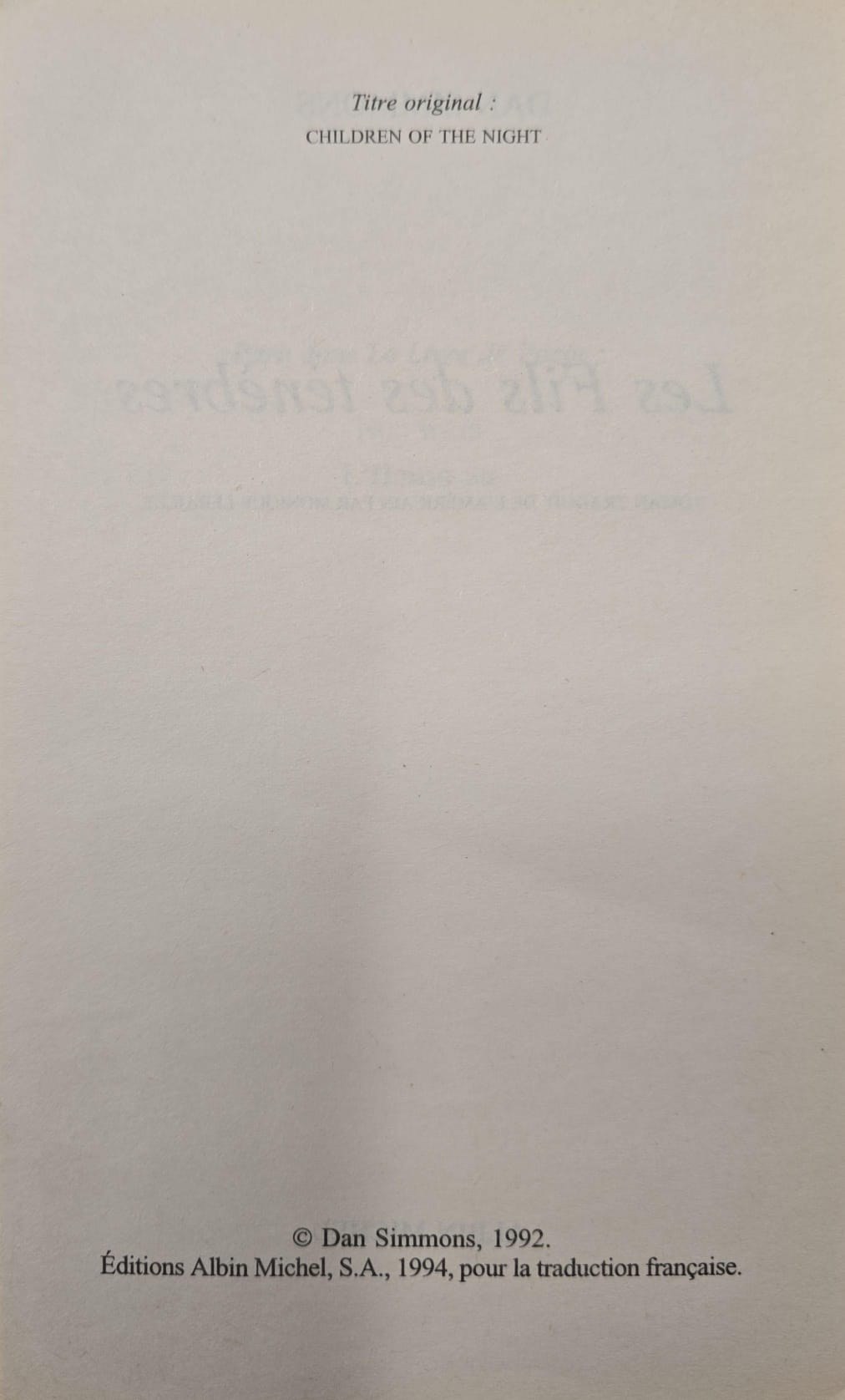Okładka książki "Les Fils des tenebres" autorstwa Dana Simmonsa, wydana we Francji nakładem Editions Albin Michel, kolekcja Le Livre de poche, 1994 r.