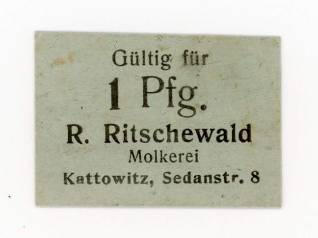 Katowice [Kattowitz], R. Ritschewald, 1 fenig. Stan zachowania 1/1-.