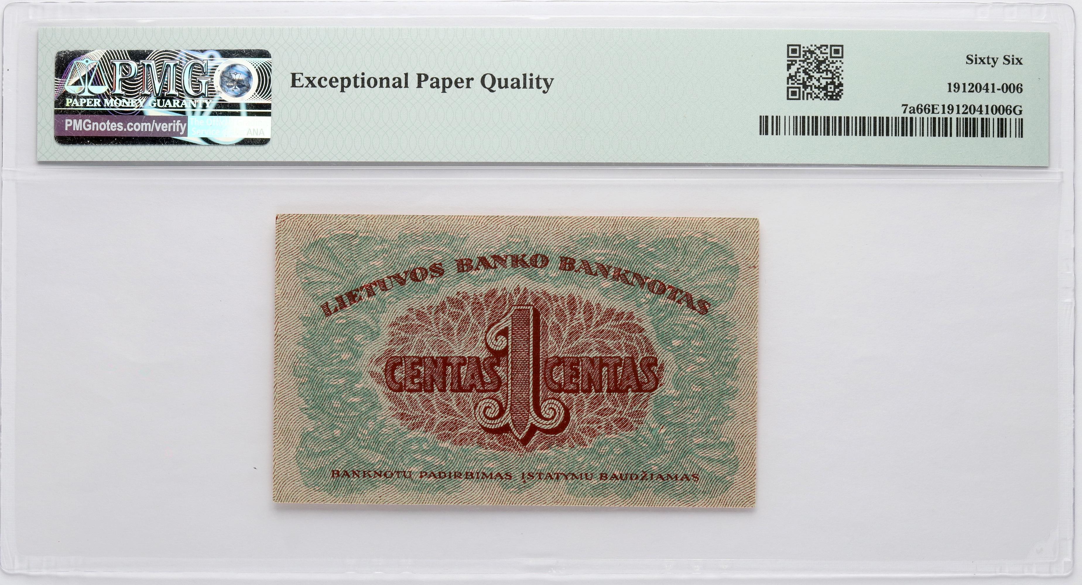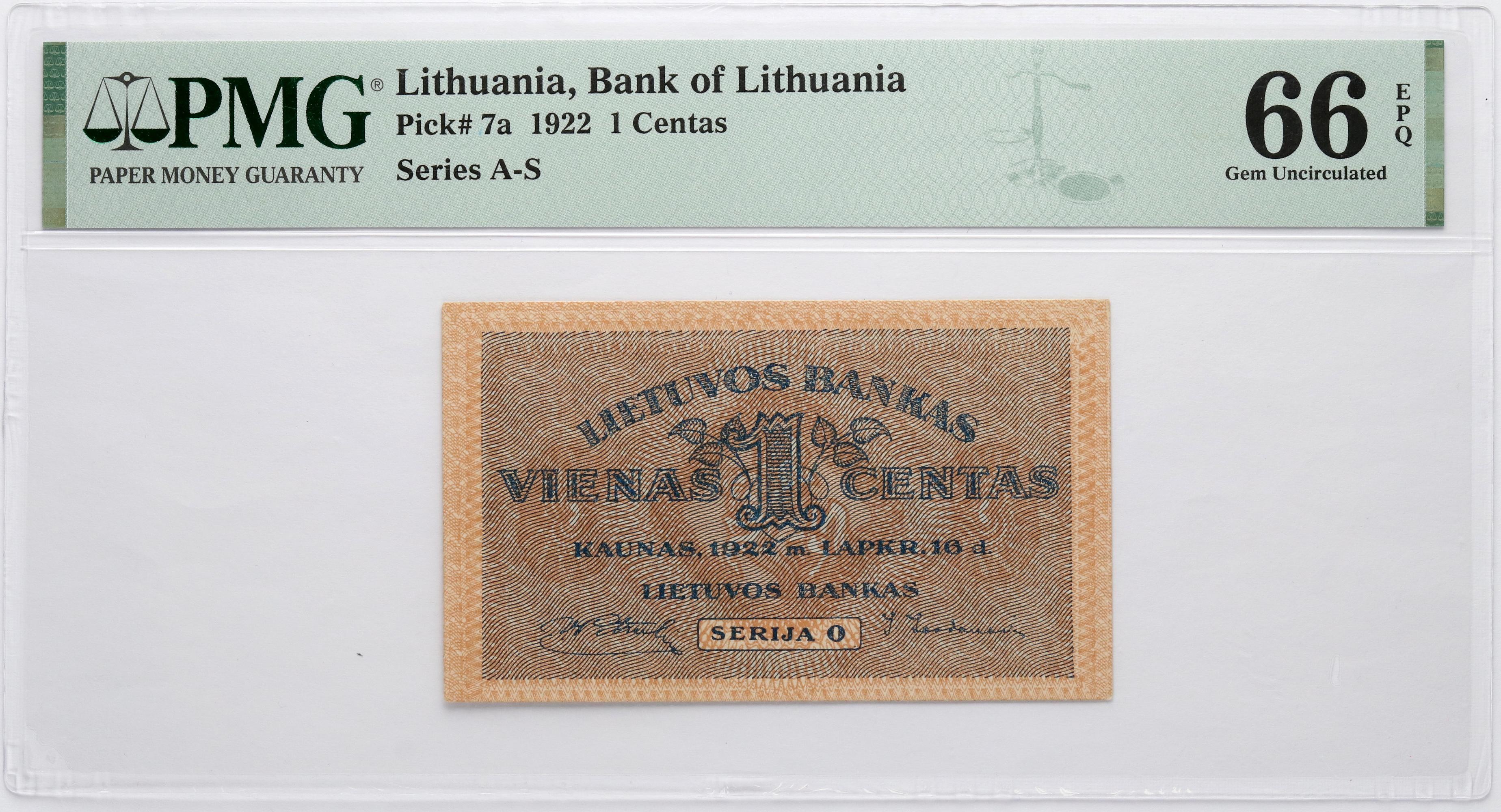 Lithuania 1 Centas 1922 PMG 66 Gem Uncirculated EPQ