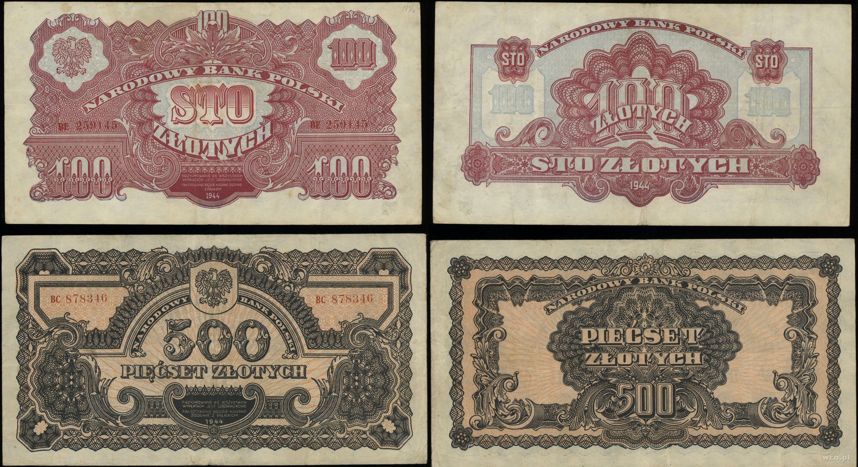 1) 100 złotych seria BE [IV] 2) 500 złotych seria BC [IV]