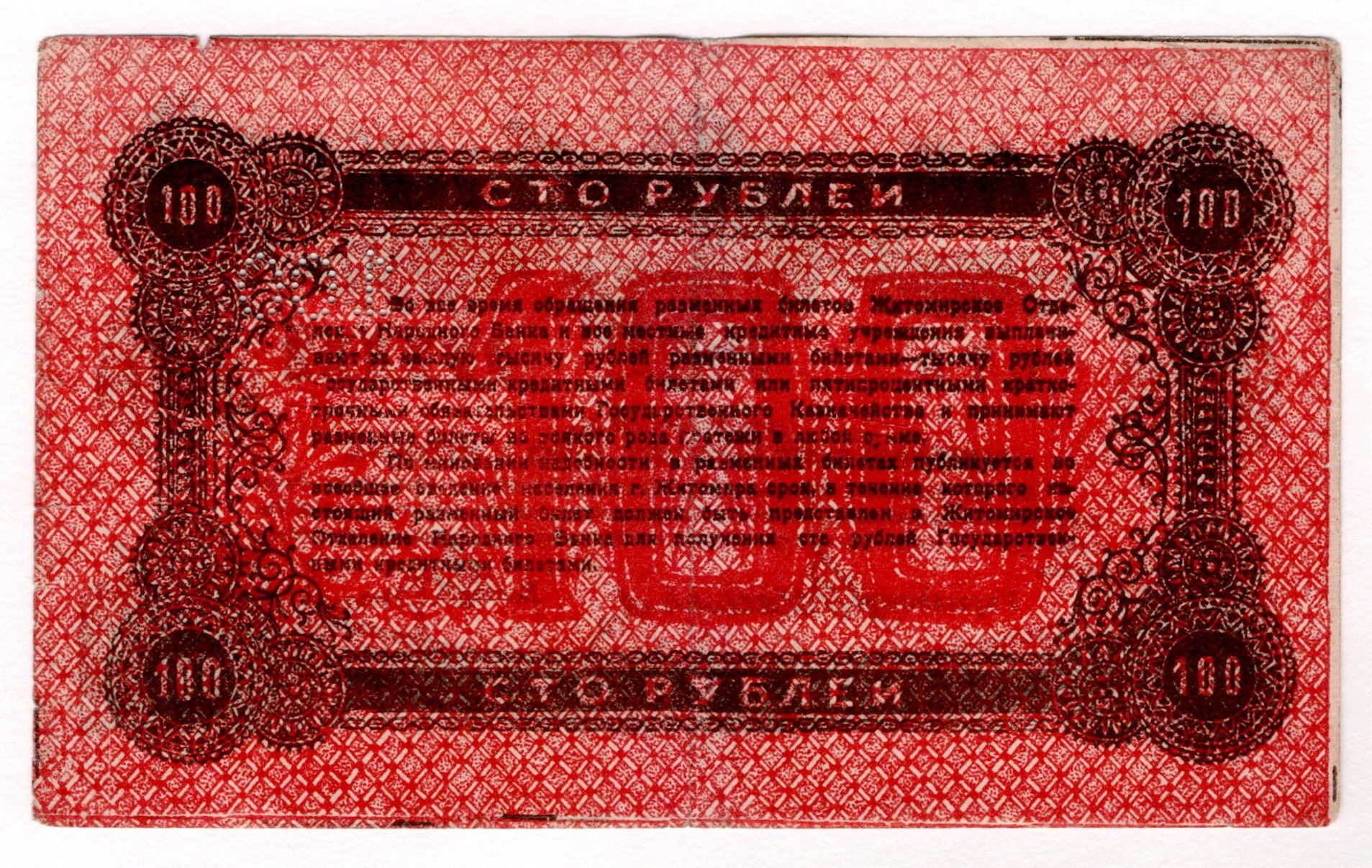 Russia - Ukraine Zhitomir 100 Roubles 1919