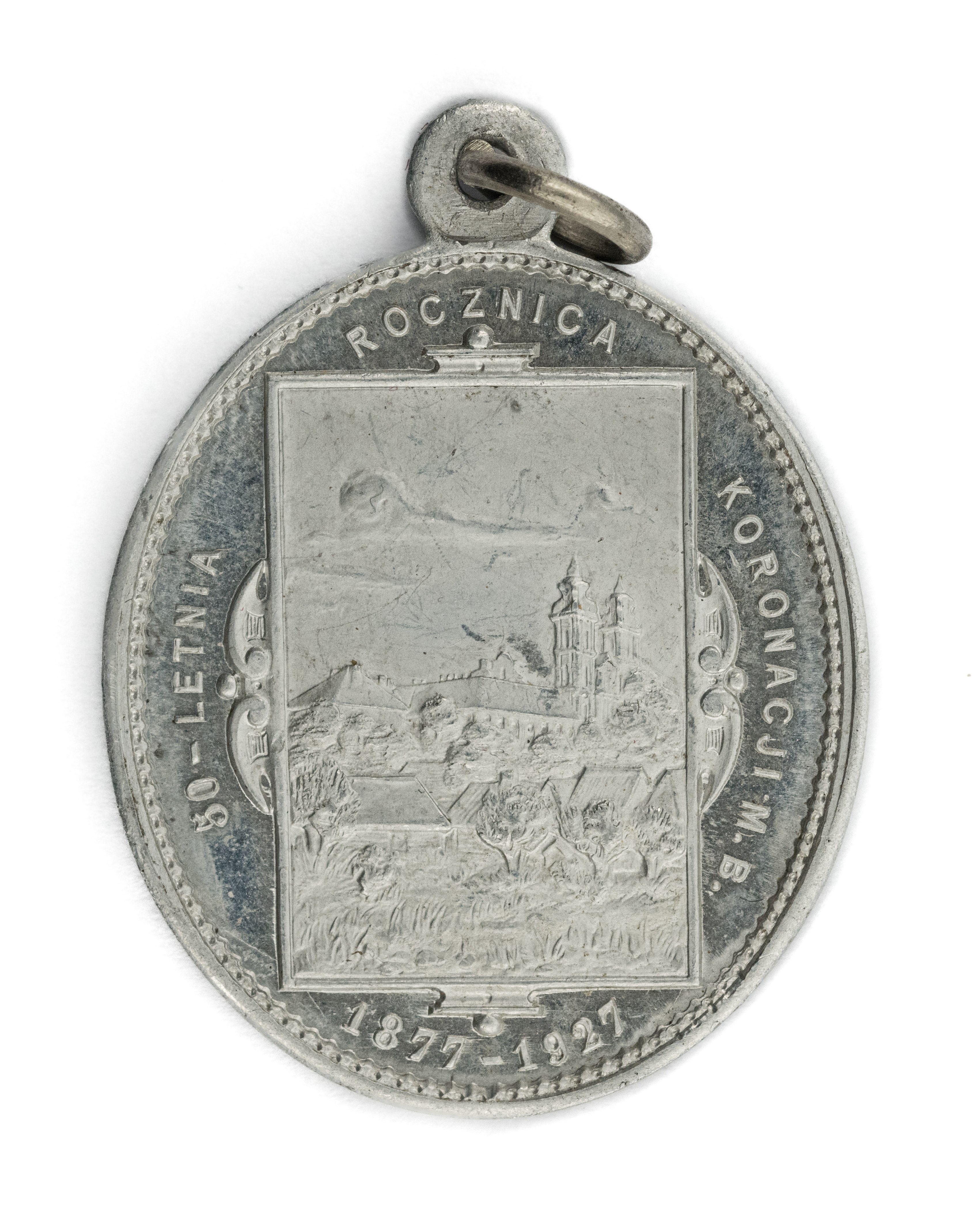Medalik 50 rocznica koronacji Matki Boskiej Starowiejskiej 1877-1927. Matko Boska Starowiejska Módl się za Nami
