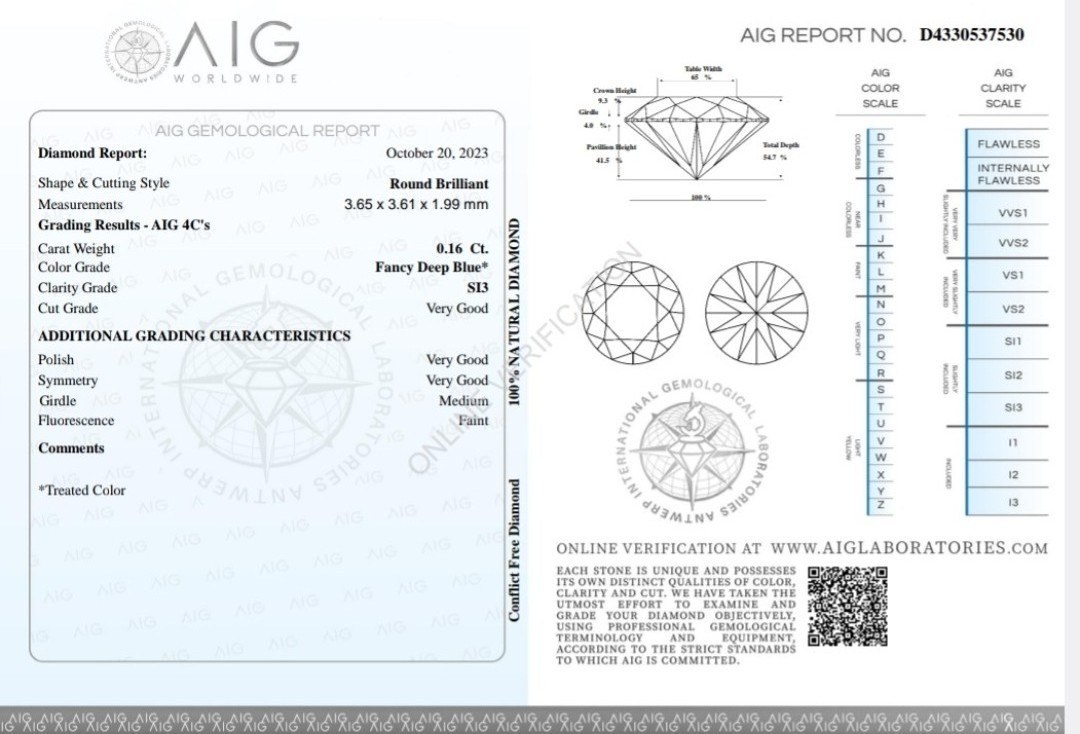 Certyfikat czołowego światowego laboratorium gemmologicznego - AIG Milan