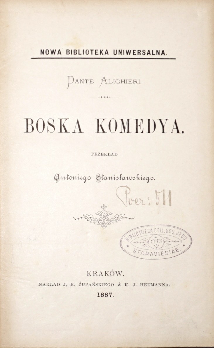 Boska komedya / Dante Alighieri ; przekł. Ant. Stanisławskiego.