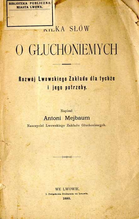 Tytuł: Kilka słów o głuchoniemych. Rozwój Lwowskiego Zakładu dla tychże i jego potrzeby