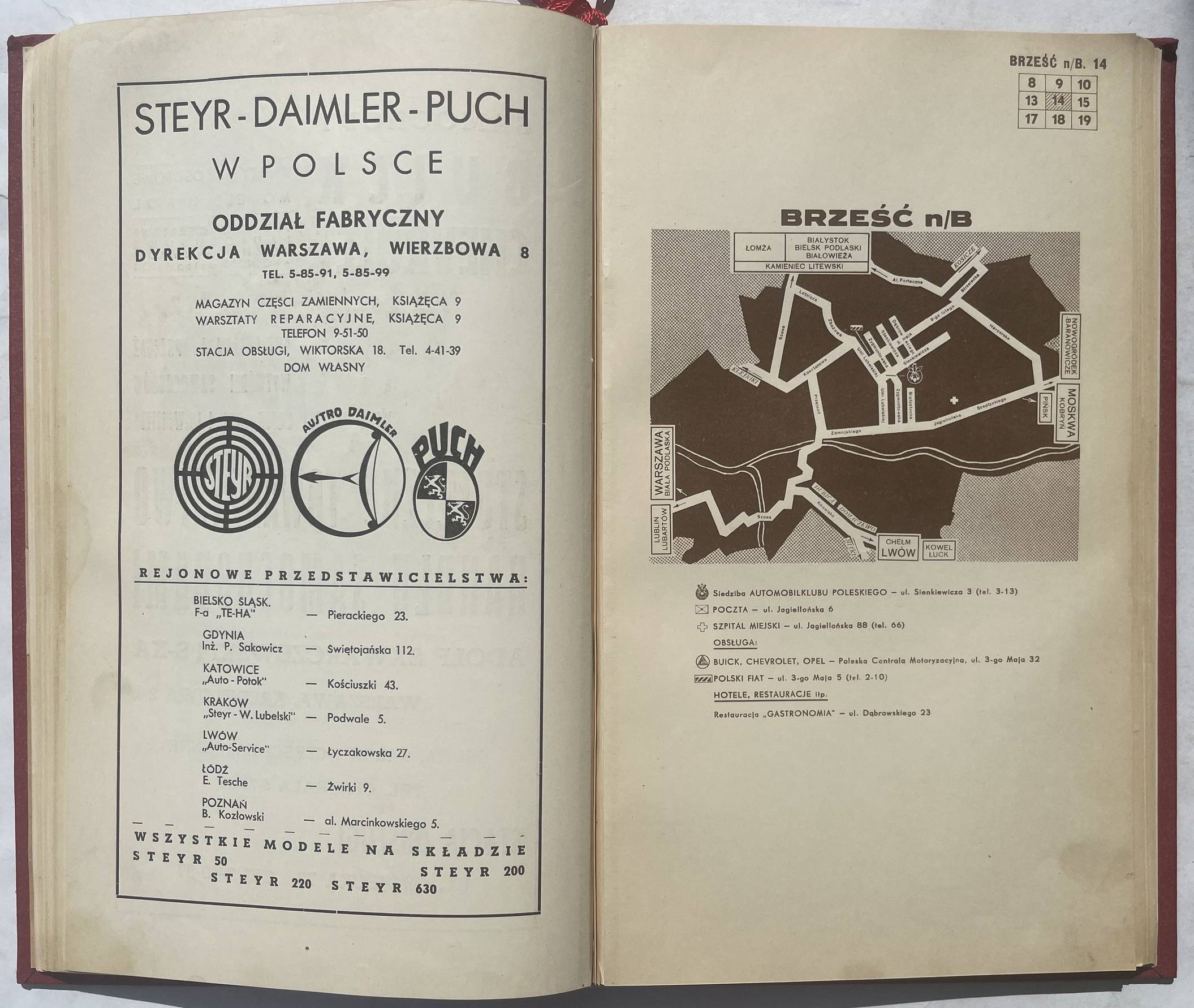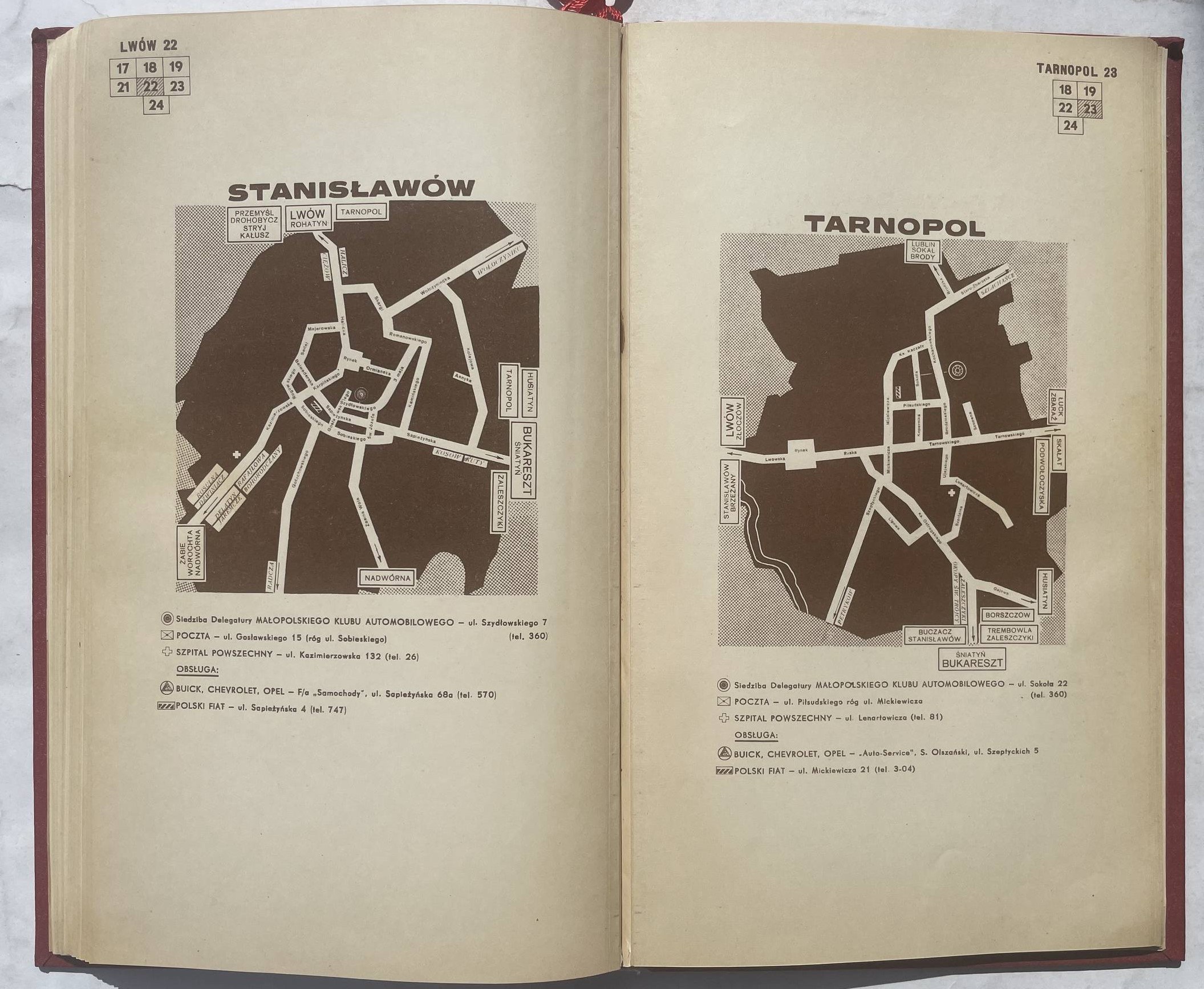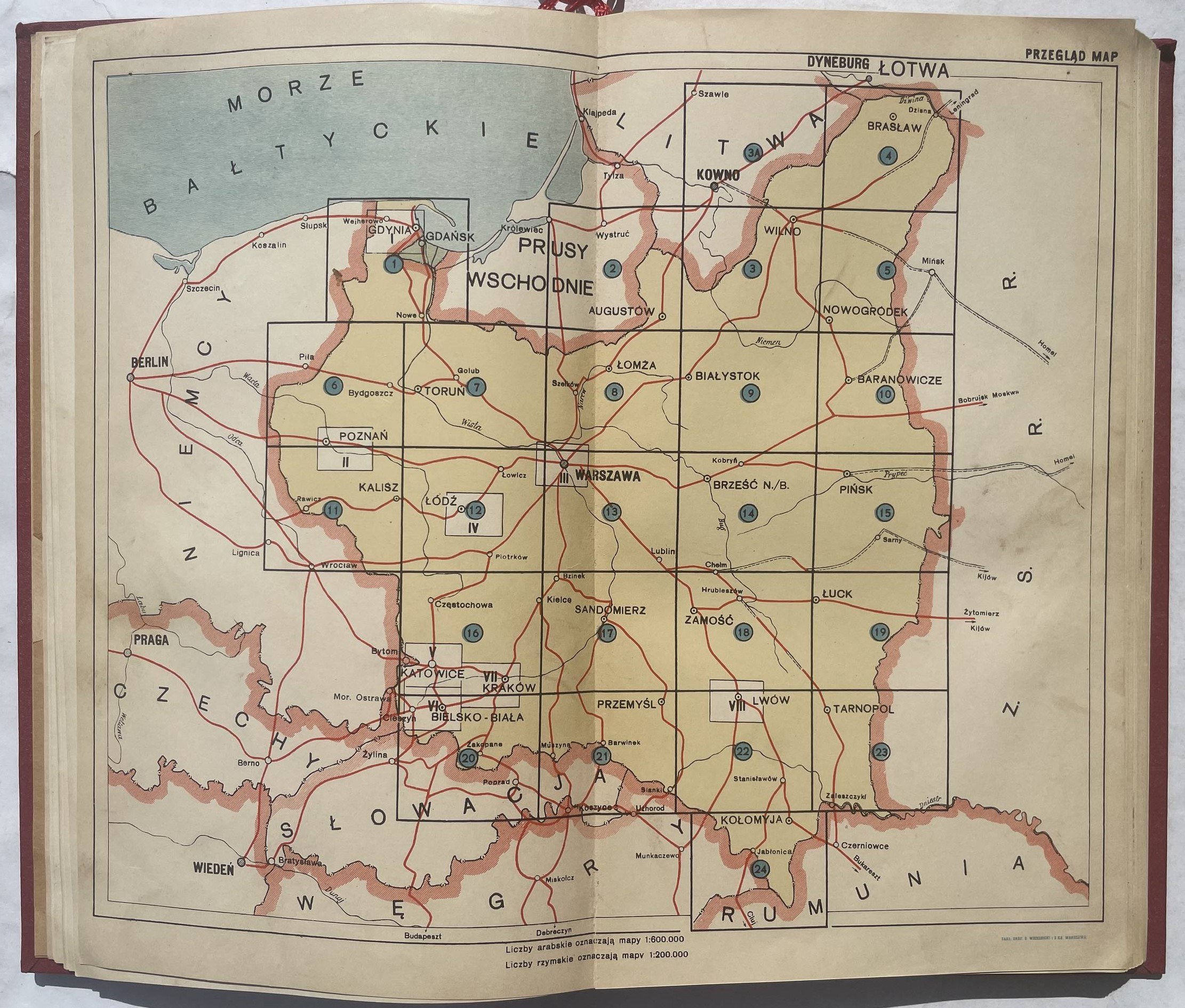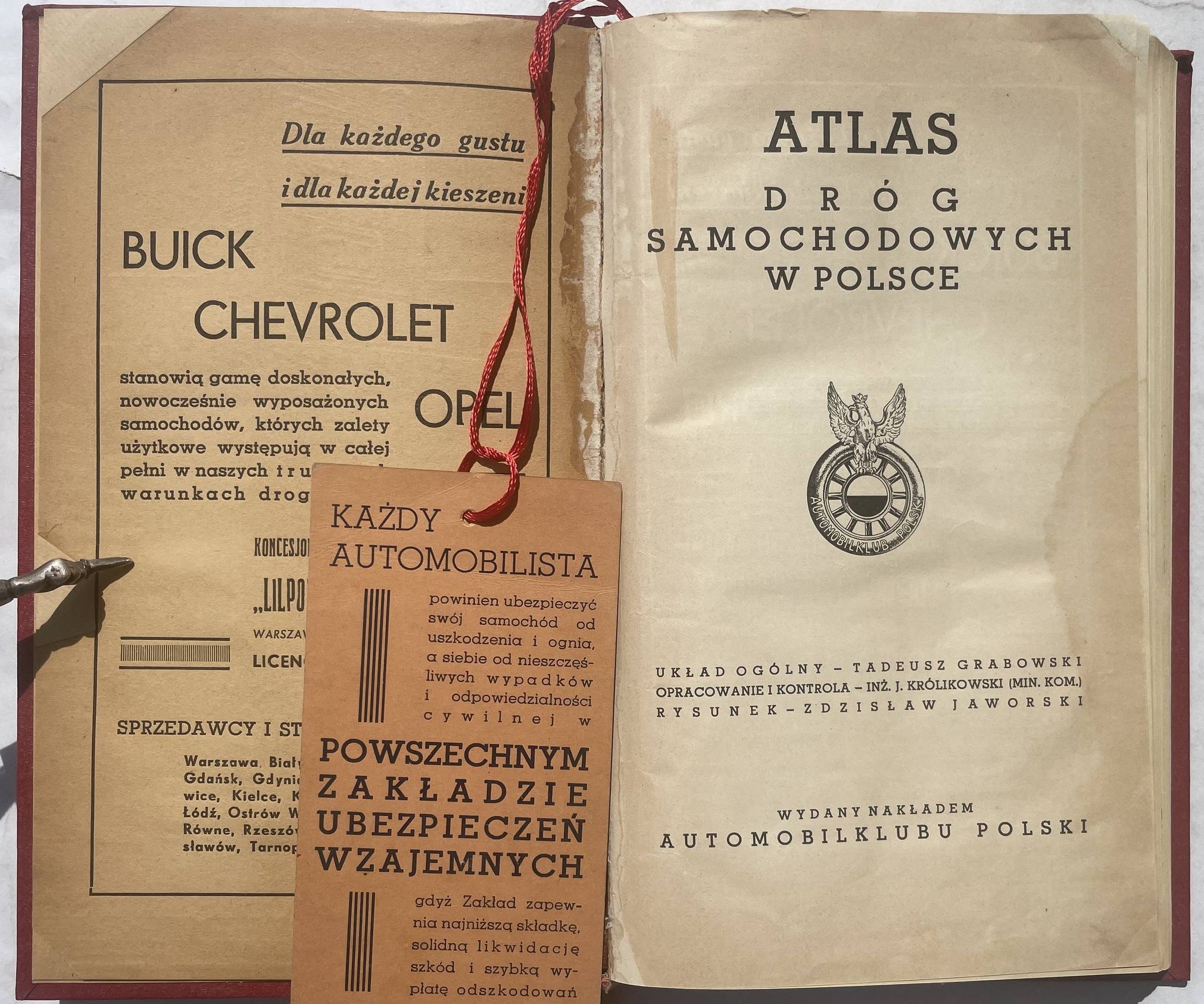 Atlas dróg samochodowych w Polsce. Warszawa 1939, nakł. Automobilklubu Pol. 27 cm, str. 20, [6], 35 map kol. skł., [8]. Okł. oryg. naklejone na wsp. oprawę, stan dobry.
