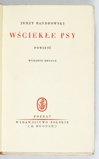 BANDROWSKI Jerzy - Wściekłe psy. Powieść. Wyd. II. Poznań [1930]. Wyd. Polskie (R. Wegner). 8, s. [4], 338, [1]. brosz.