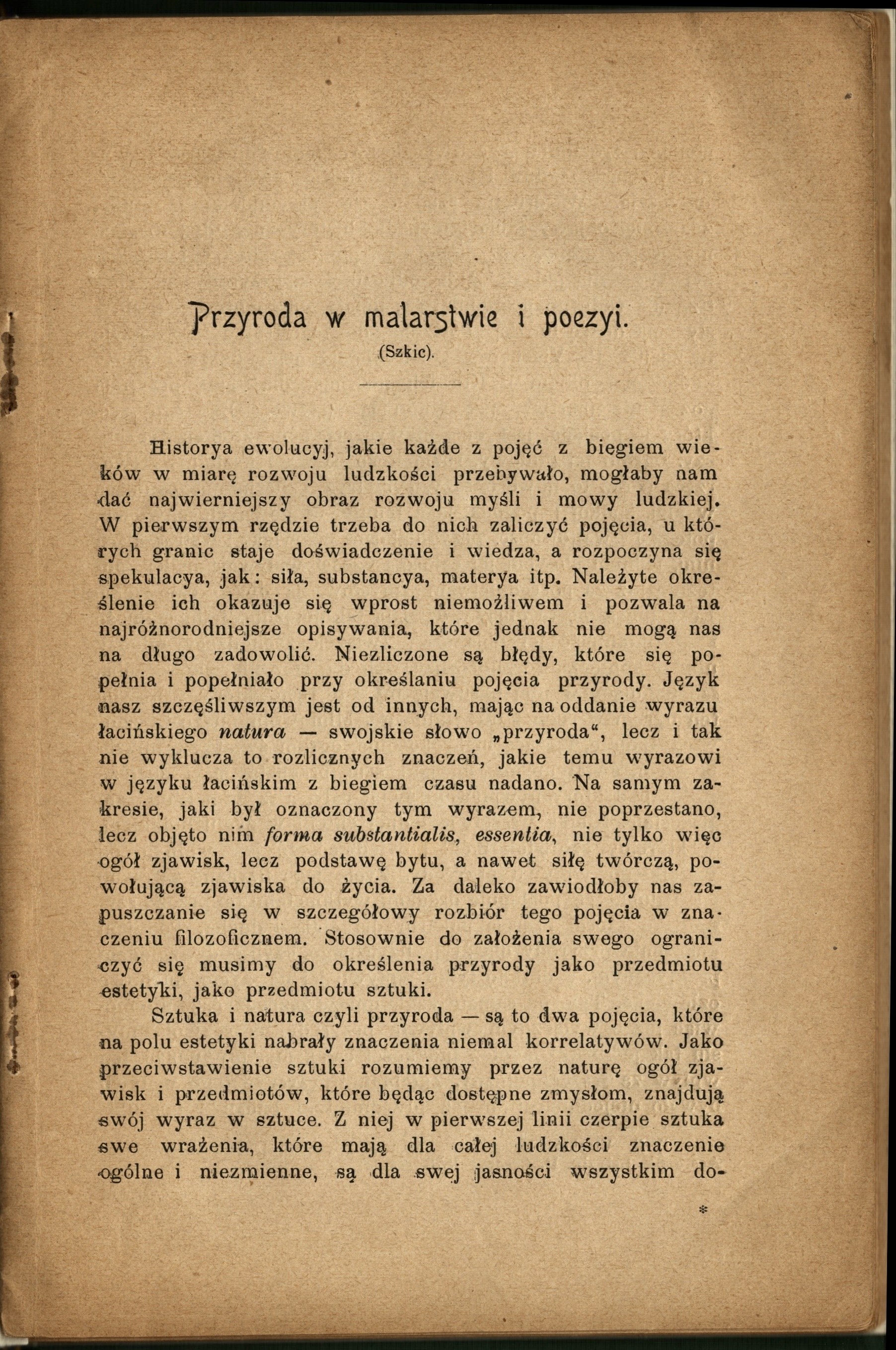 Interesująca rozprawa Witolda Barewicza (1865-1911), doktora germanistyki, profesora gimnazjalnego we Lwowie, poświęcona ukazaniu przyrody w malarstwie i poezji.