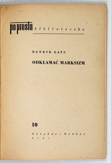 KATZ Henryk - Odkłamać marksizm. Warszawa 1957. Książka i Wiedza. 16d, s. 75, [1]. brosz. Bibliot. "Po Prostu", nr 10.