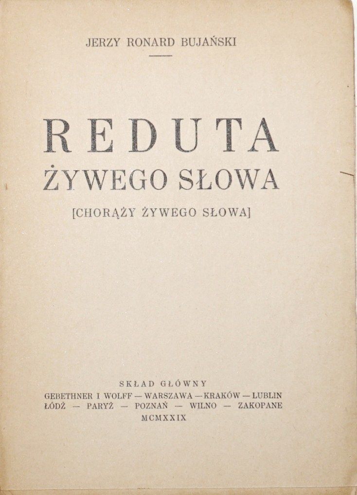 Reduta żywego słowa : (Chorąży żywego słowa) / Jerzy Ronard Bujański.