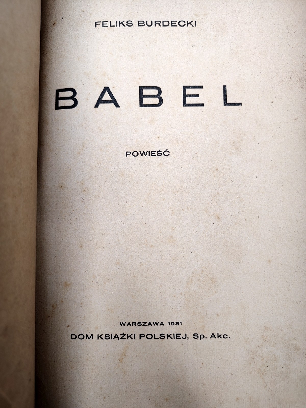 Burdecki Feliks - Babel - Warszawa 1931 [ Pierwsze wydanie ]