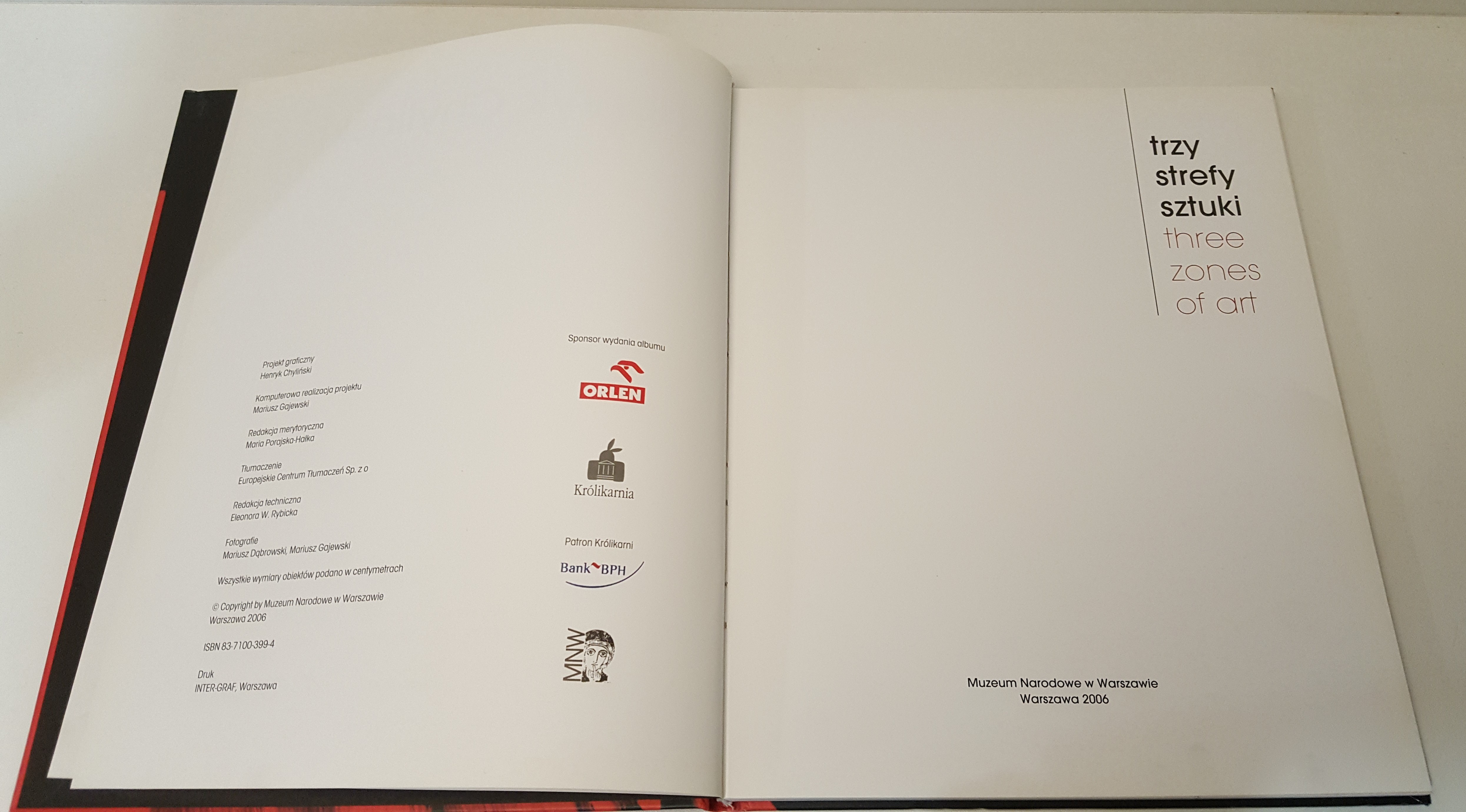 Muzeum Narodowe w Warszawie. Warszawa 2006. Wym. 30,7x24,5cm; stron 96. Oprawa twarda wydawnicza (otarcia krawędzi i rogów, zarysowania).CHYLIŃSKI Henryk - TRZY STREFY SZTUKI/ THREE ZONES OF ART