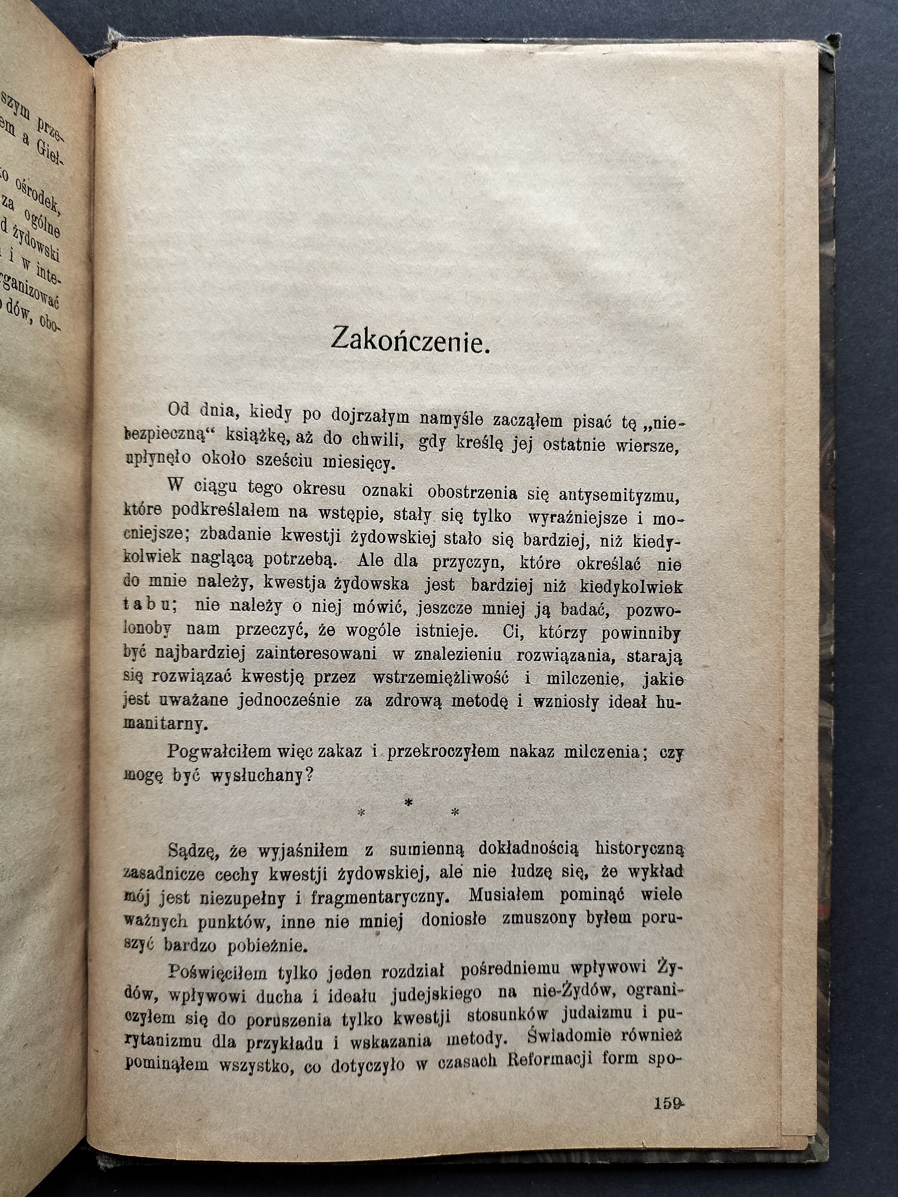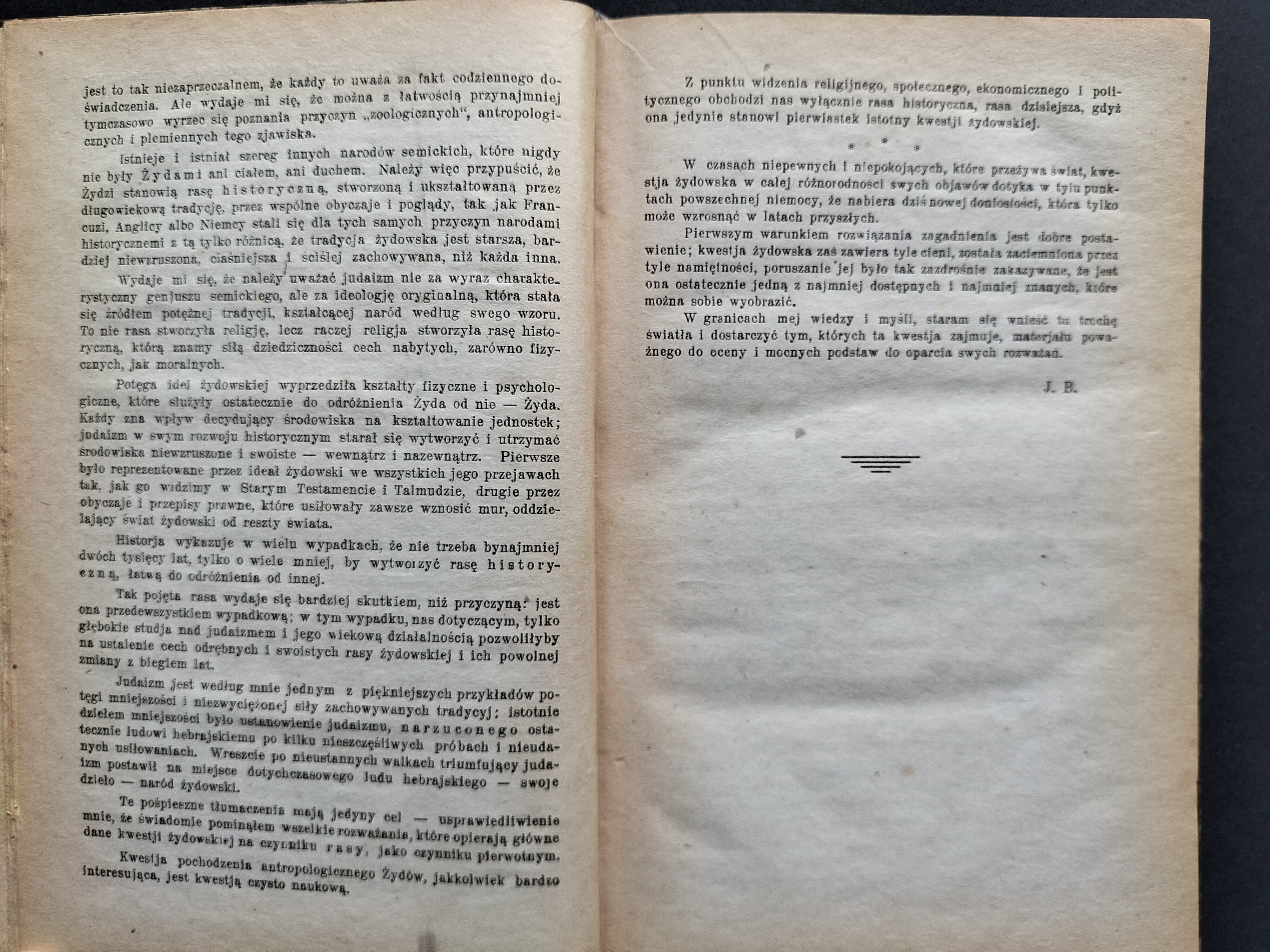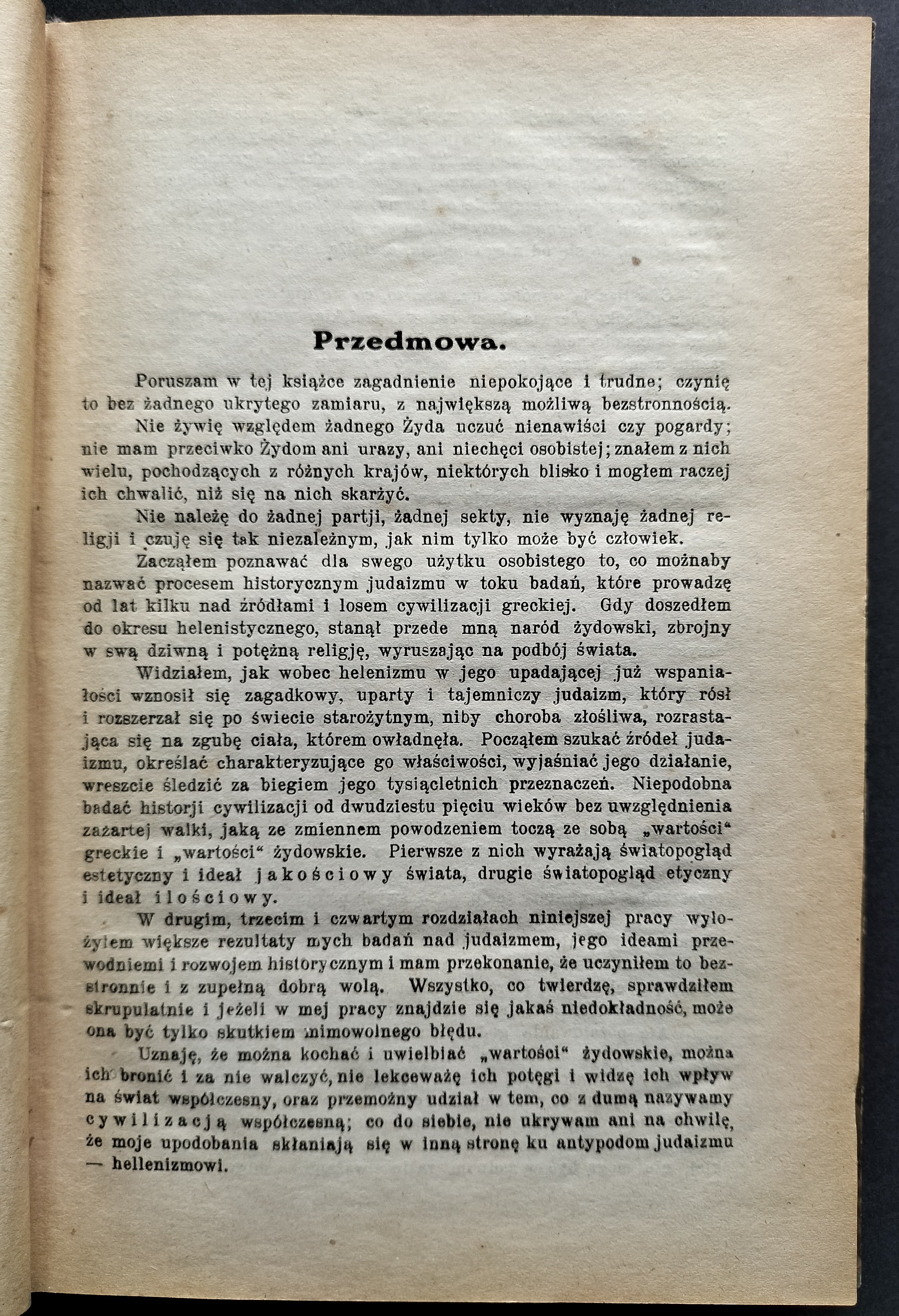 Treść: Odrodzenie antysemityzmu: jego przyczyny współczesne i znaczenie. Wyłączność żydowska. Judaizm i duch buntu. Judaizm i purytanizm. Rozwiązania kwestji żydowskiej : nacjonalizm czy asymilacja.