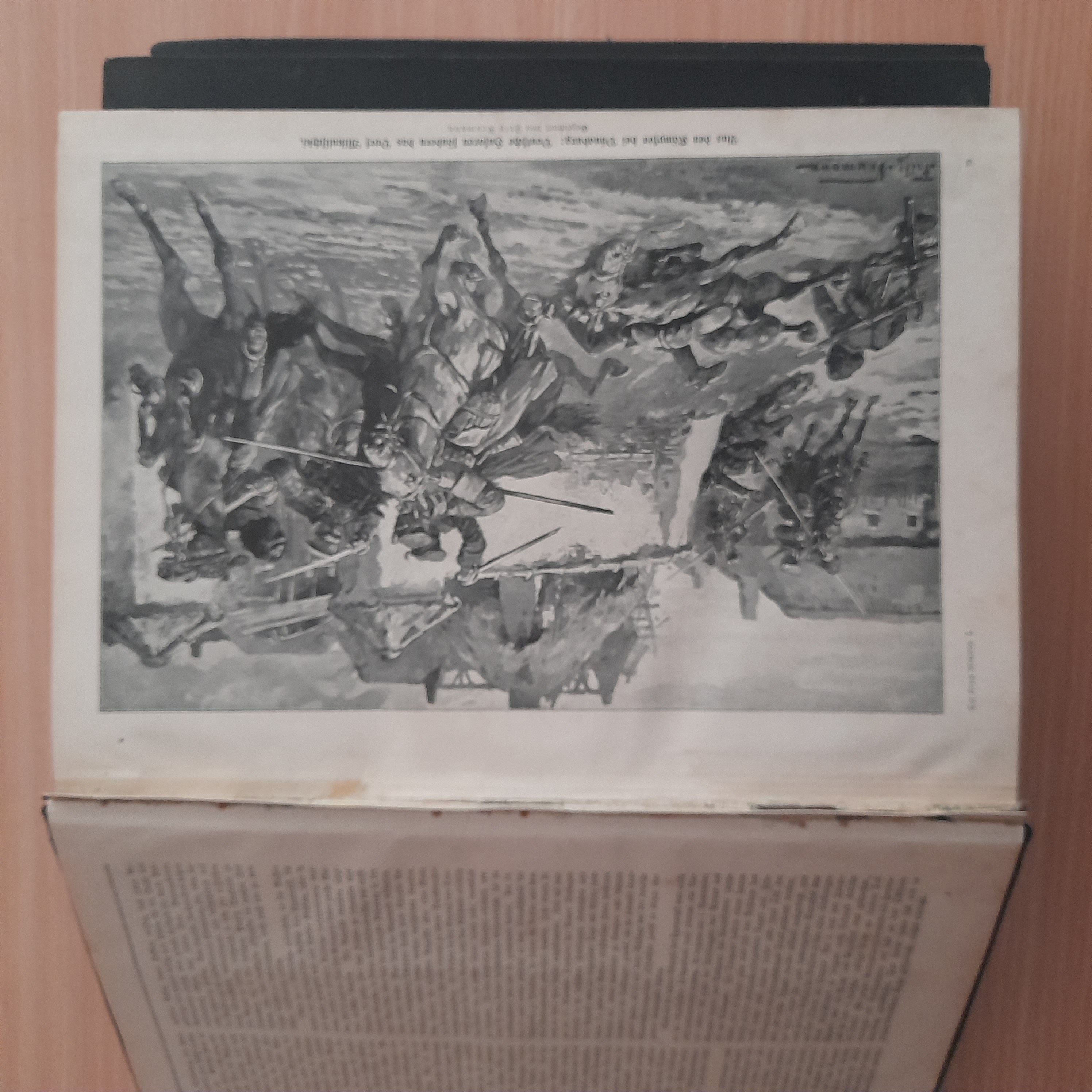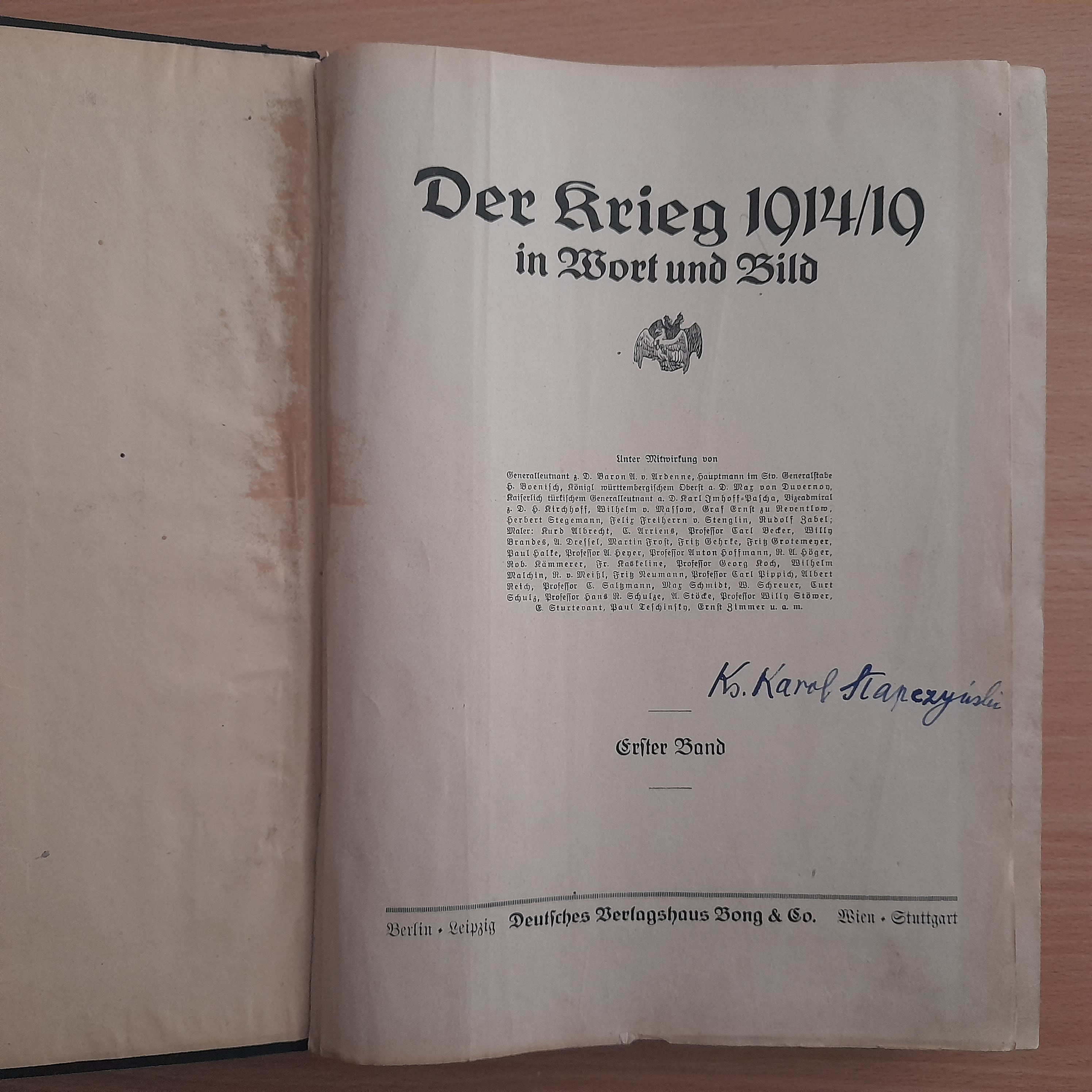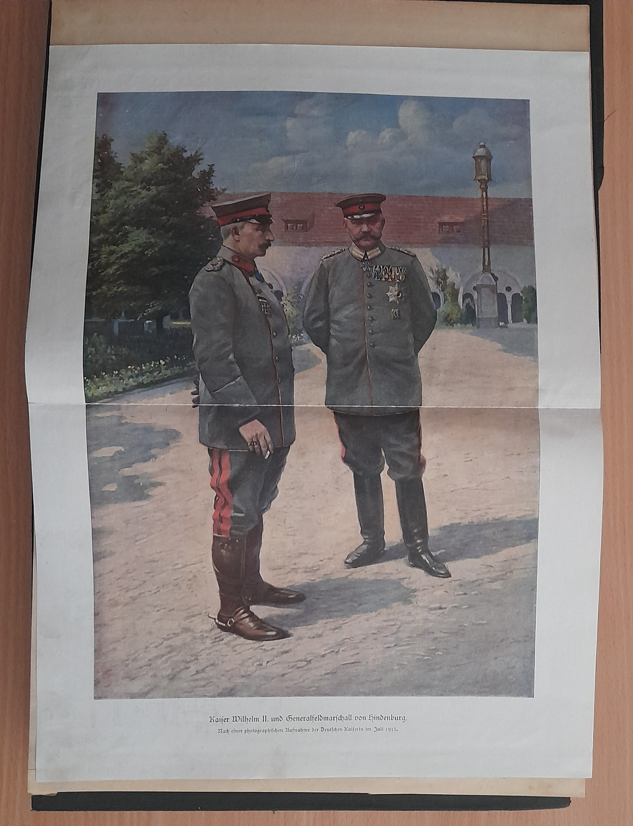 Der Krieg 1914/19 in Wort Und Bild. Tom 1/3, Berlin – Leipzig [1919] Wyd. Deutsches Verlagshaus Bong &Co, str. II, 1830 (paginacja wspólna dla trzech tomów), liczne ilustracje + rozkładane tablice, opr. oryg. pł. zdobiona 30cm /w tomie 3 brak karty tytułowej/