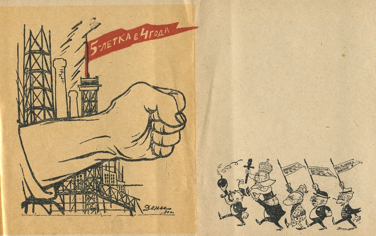 Książka zawiera liczne karykatury polityczne autorstwa Wiktora Deni (właśc. Denisow, 1893–1946), czołowego radzieckiego karykaturzysty i twórcy plakatów propagandowych, znanego z bezkompromisowych ataków na wrogów ideologicznych ZSRR. Publikacja poprzedzona wstępem Emeliana Jarosławskiego. Treść w j. rosyjskim.