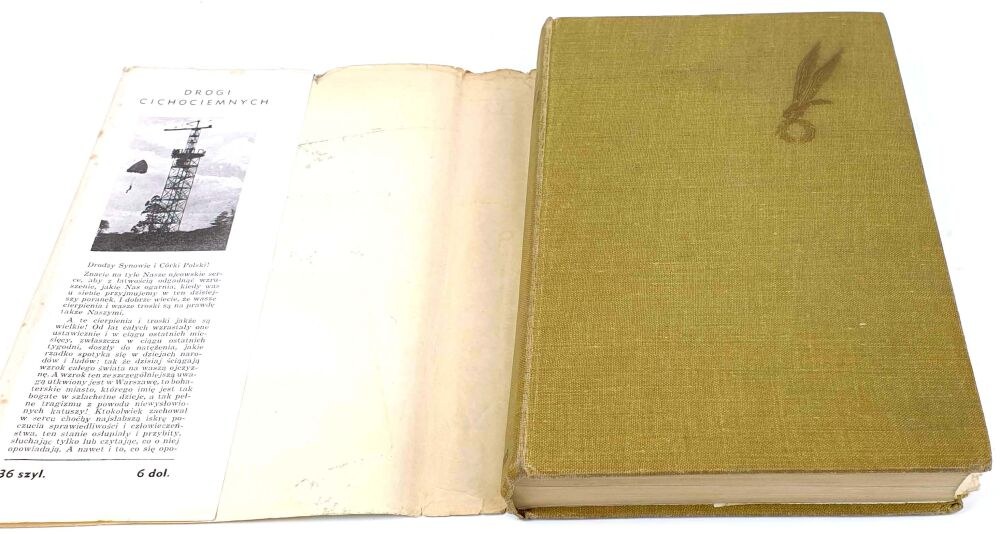 TWARDA OPRAWA WYDAWNICZA PŁÓCIENNA, ZŁOCONE NAPISY NA GRZBIECIE, NA PRZEDNIM LICU ZŁOCONY ZNAK CICHOCIEMNYCH, OBWOLUTA