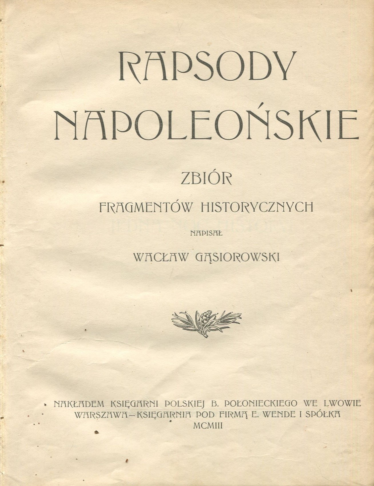 Lwów - Warszawa 1903. Księgarnia Polska B. Połonieckiego, Księgarnia Wende i Spółka. 17,5x22,5 cm, str. 137, (2), czarno-białe ilustracje w tekście, twarda oprawa z epoki, półskórek. Stan dobry (otarcia oprawy).