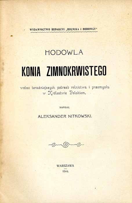 Tytuł: Hodowla konia zimnokrwistego wobec teraźniejszych potrzeb rolnictwa i przemysłu w Królestwie Polskiem