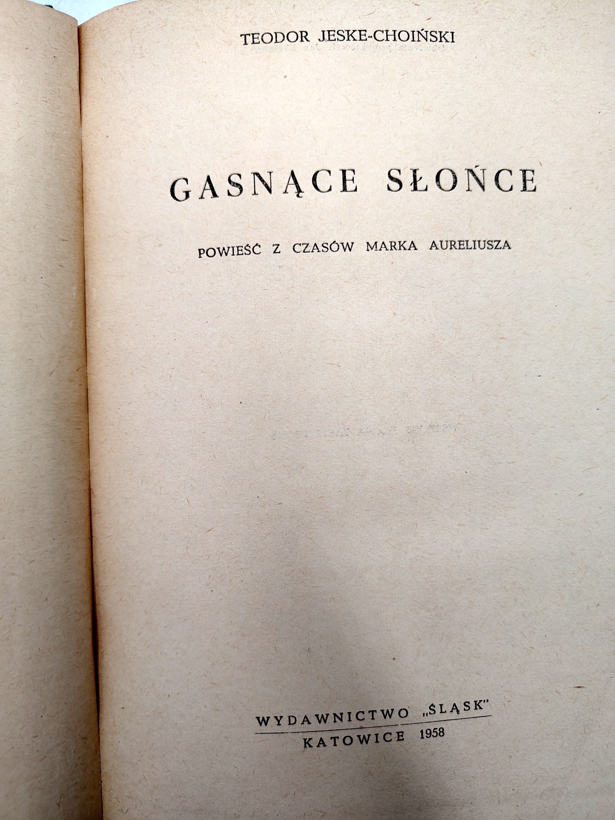 Jeske-Choiński Teodor - Gasnące Słońce - powieść z czasów Marka Aureliusza - Katowice 1958