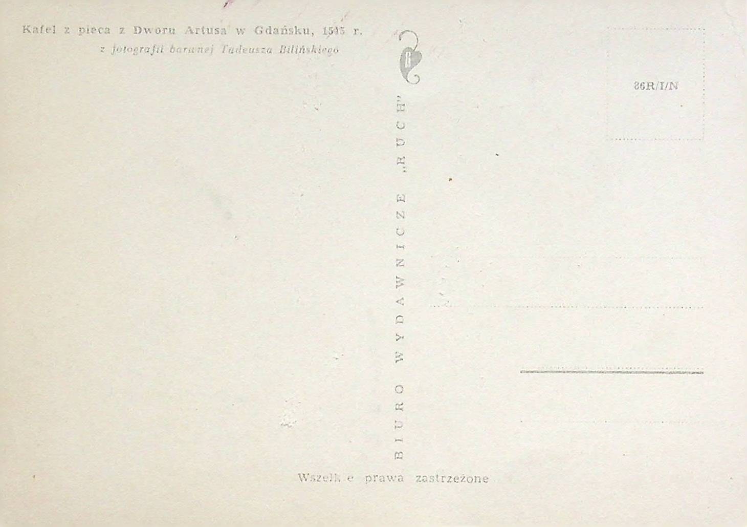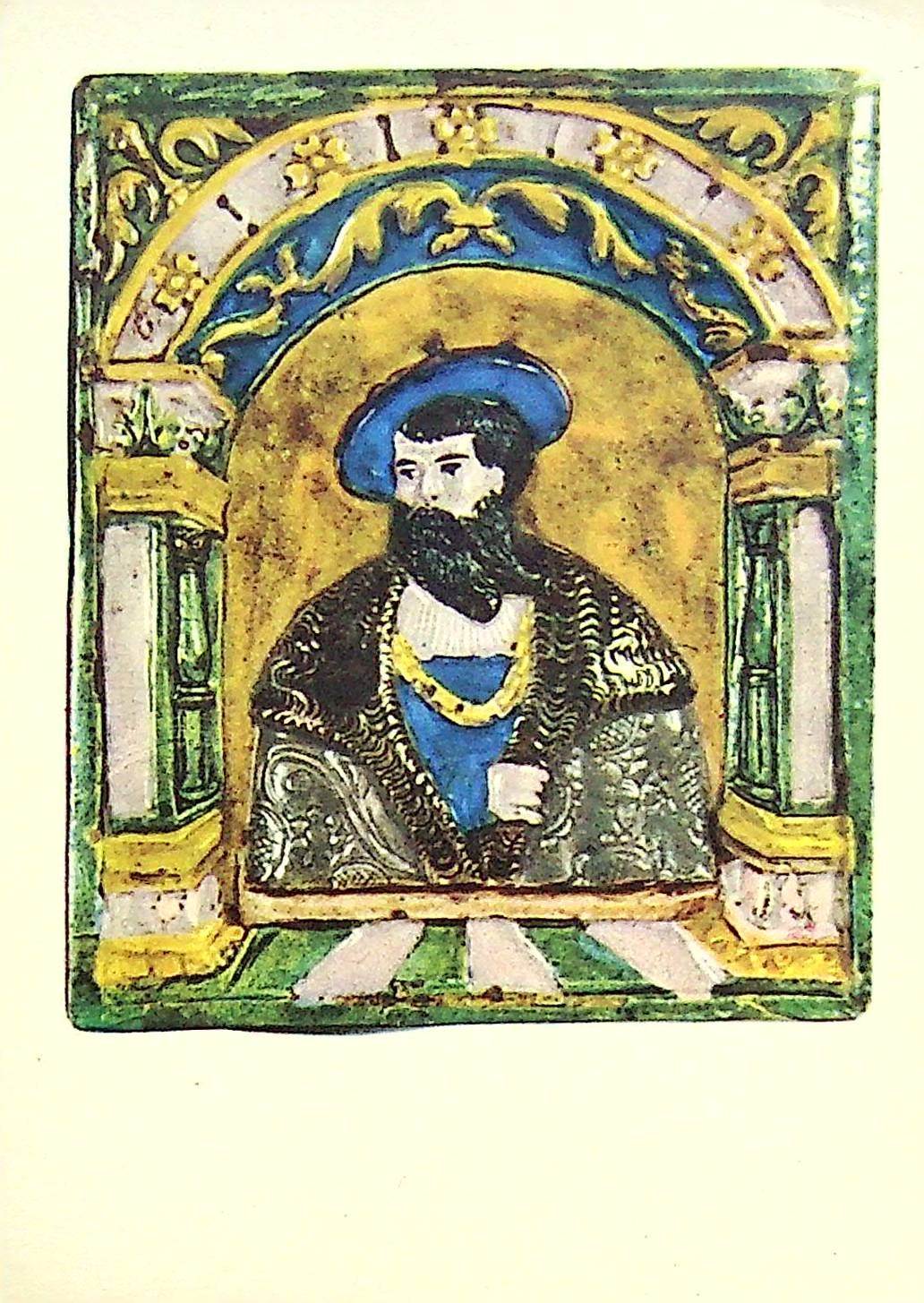 KAFEL Z PIECA Z DWORU ARTUSA W GDAŃSKU, 1545r.(mężczyzna w niebieskim kapeluszu)